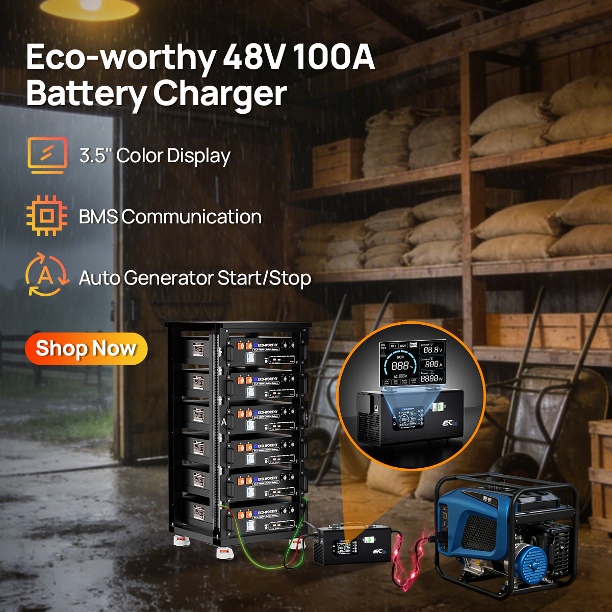 ECO-WORTHY 5.12KWh Home Backup Power With 48V 100Ah LiFePO4 And 3500W 48V Off-Grid Inverter