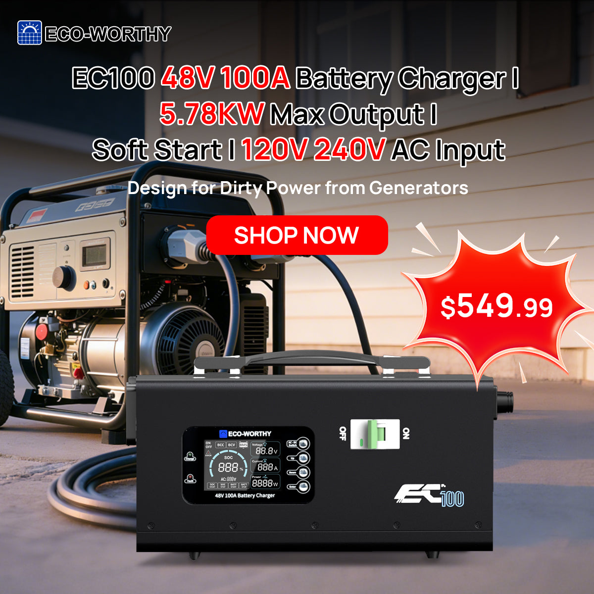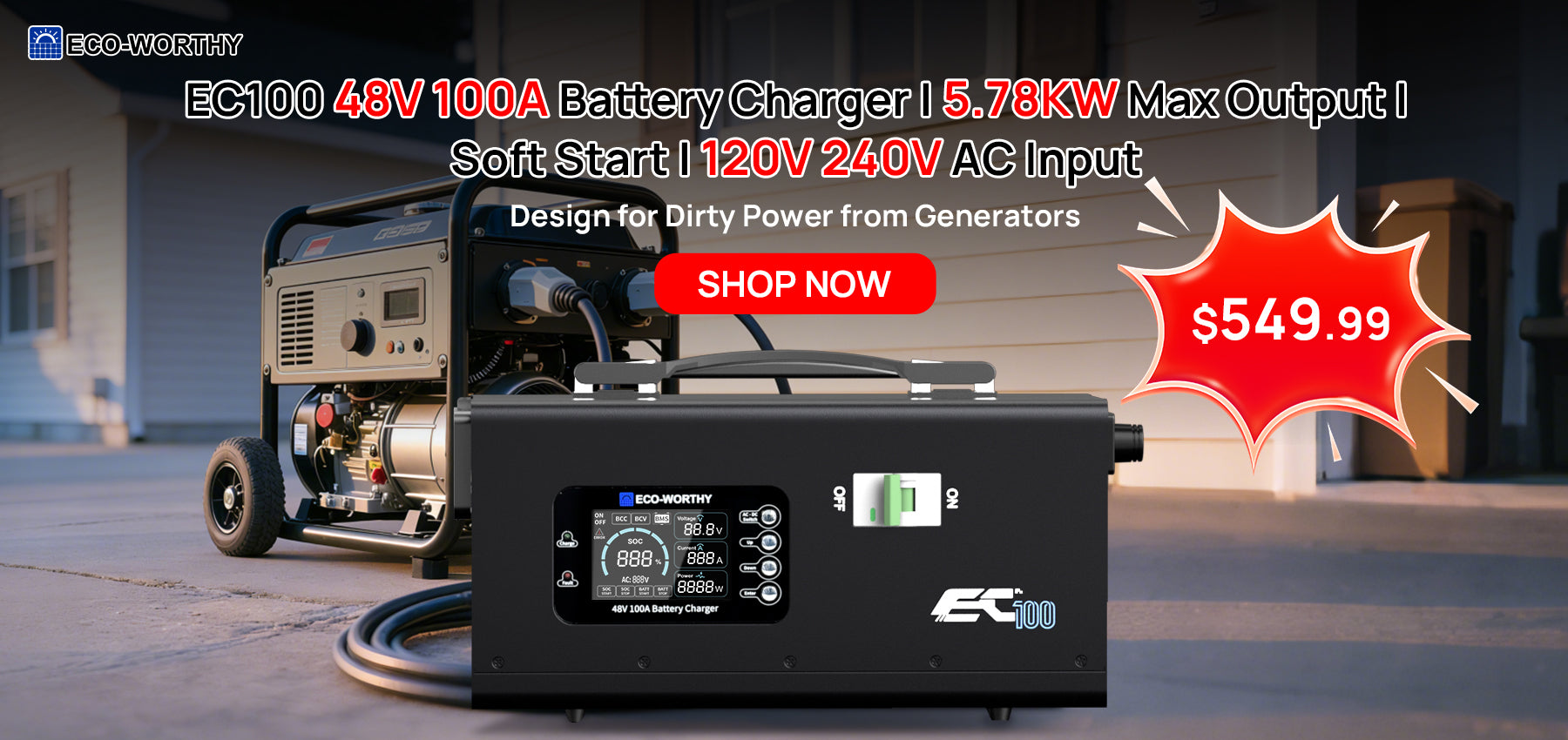 EC100 48V 100A Battery Charger | 5.78KW Max Output | Soft Start |120V 240V AC Input