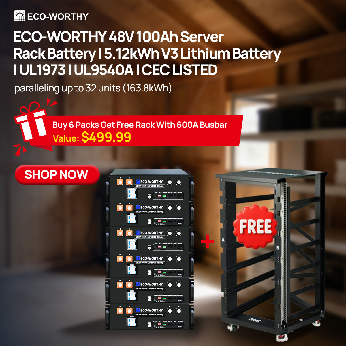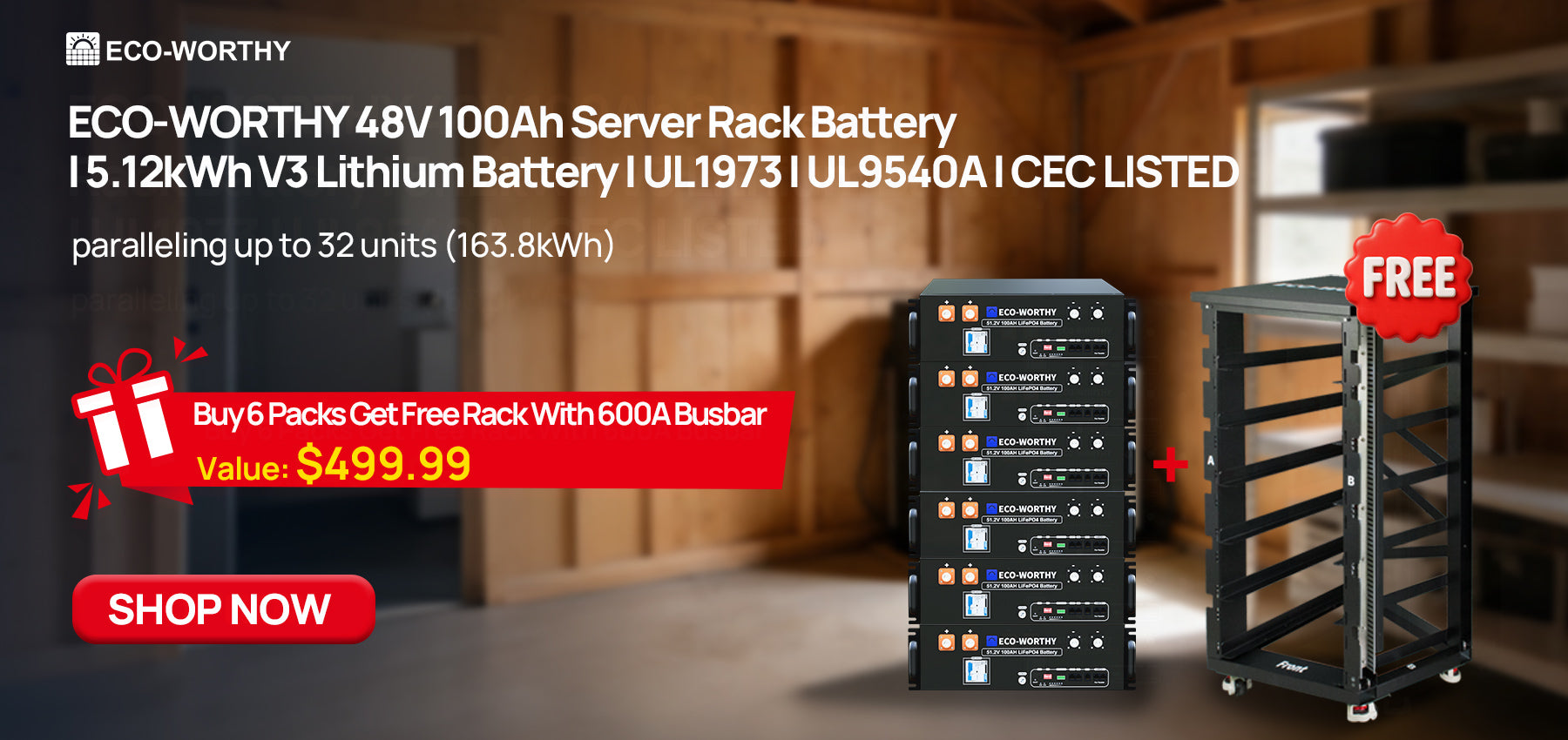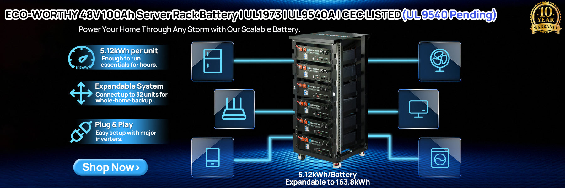 ECO-WORTHY 48V 100Ah Server Rack Battery | 5.12kWh V3 Lithium Battery | UL1973 | UL9540A | CEC