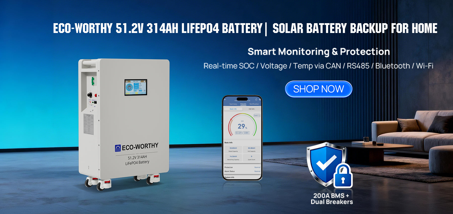ECO-WORTHY 51.2V 314Ah LiFePO4 Battery| Solar Battery Backup for home