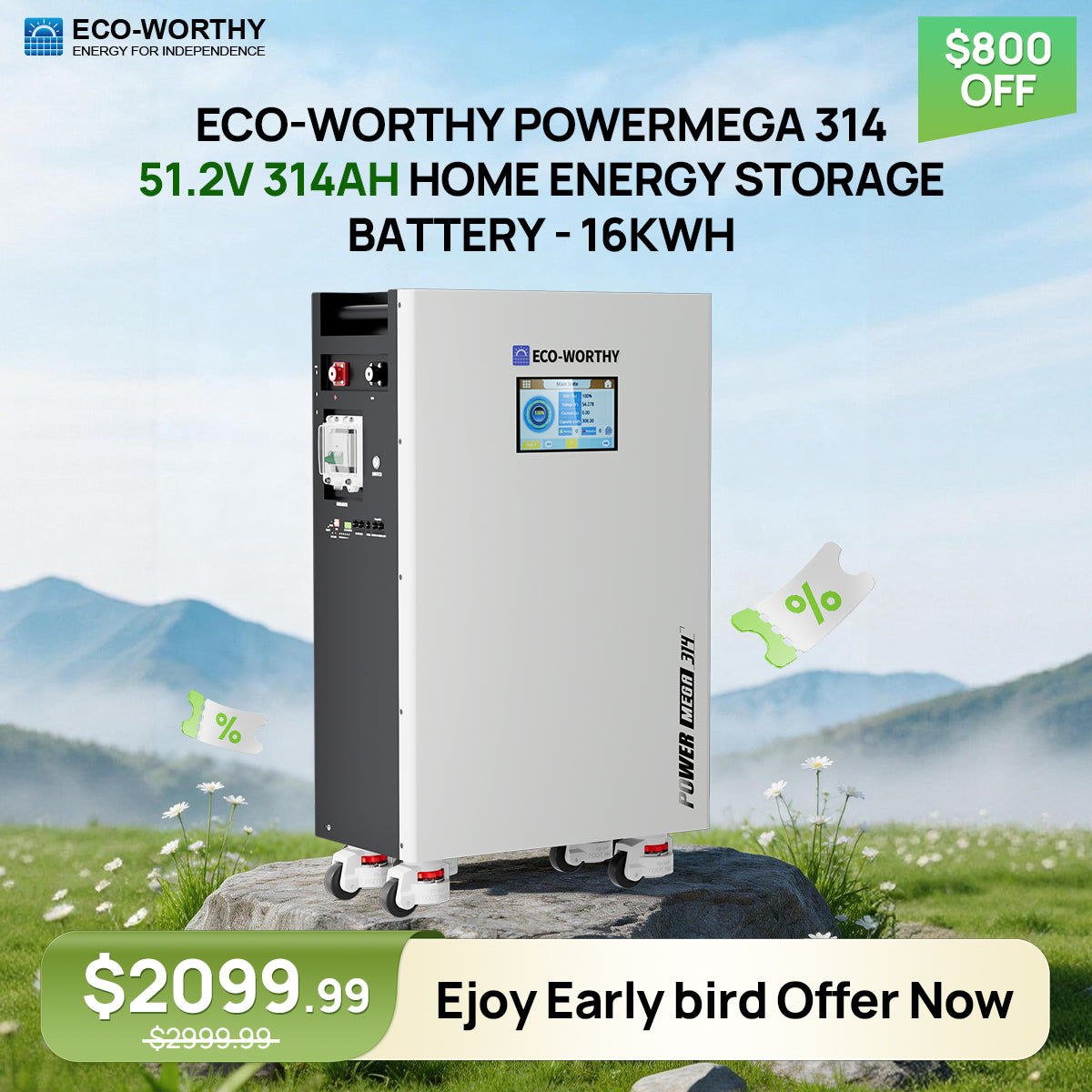 ECO-WORTHY PowerMega 314 | 51.2V 314AH Lithium Battery 16kWh | Bluetooth & WiFi | Active Balance