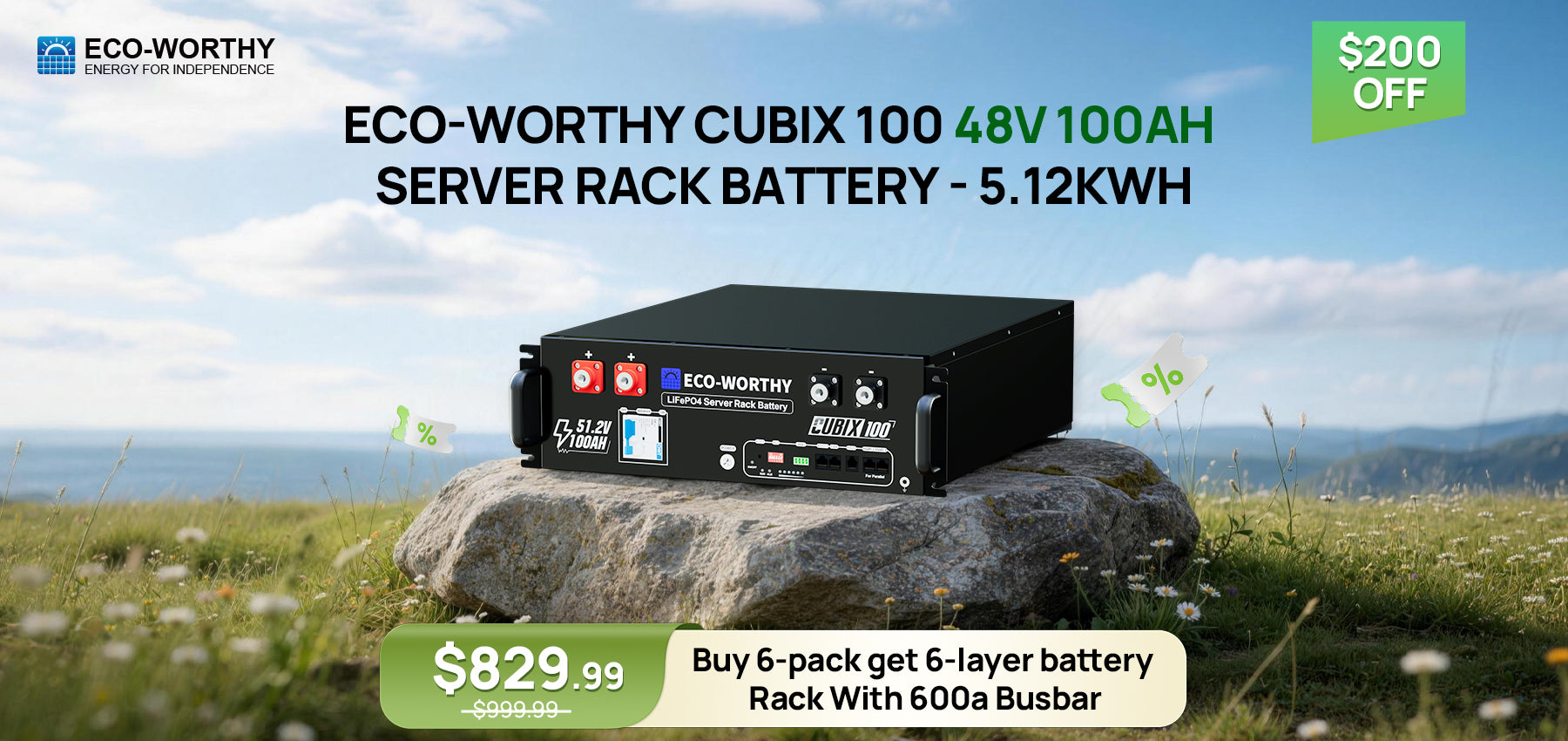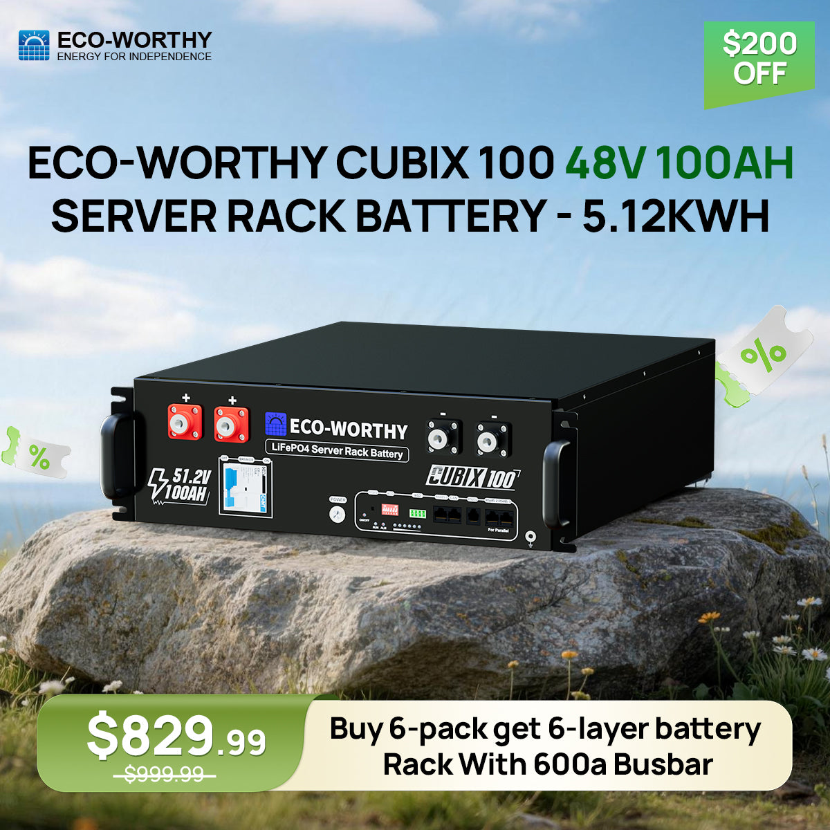 ECO-WORTHY Cubix 100 | 48V 100Ah Server Rack Battery | Bluetooth & WiFi | 10 Years Warranty | UL1973 | UL9540A | CEC