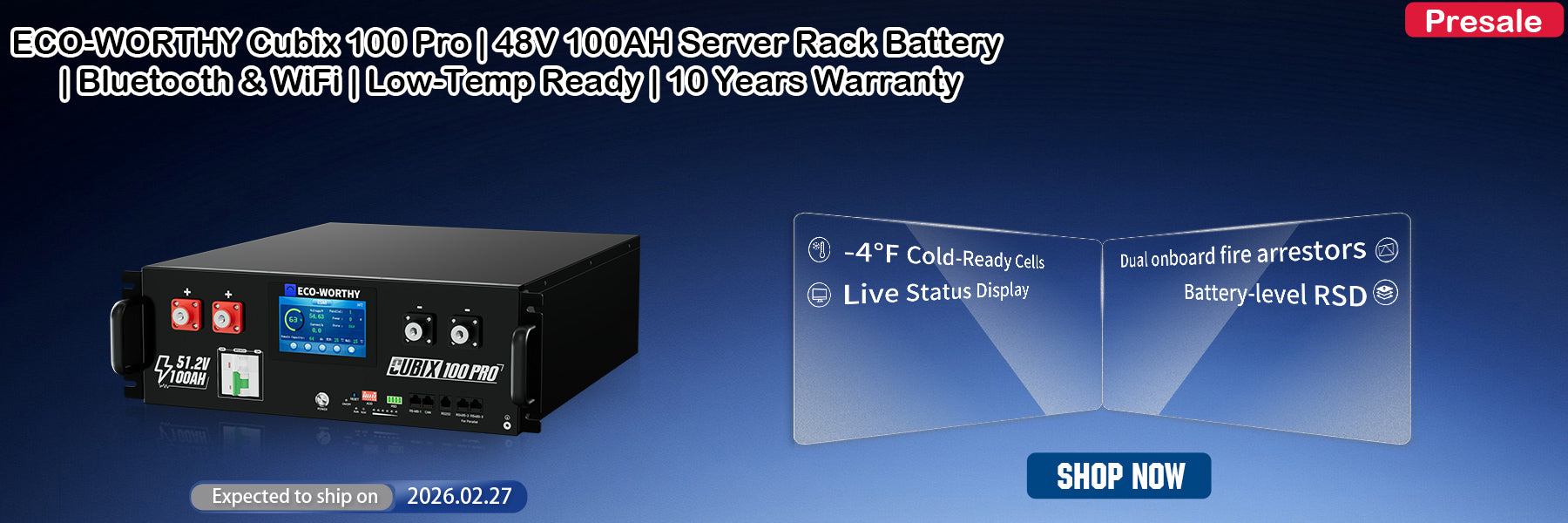ECO-WORTHY Cubix 100 Pro | 48V 100AH Server Rack Battery | Bluetooth & WiFi | Low-Temp Ready | 10 Years Warranty