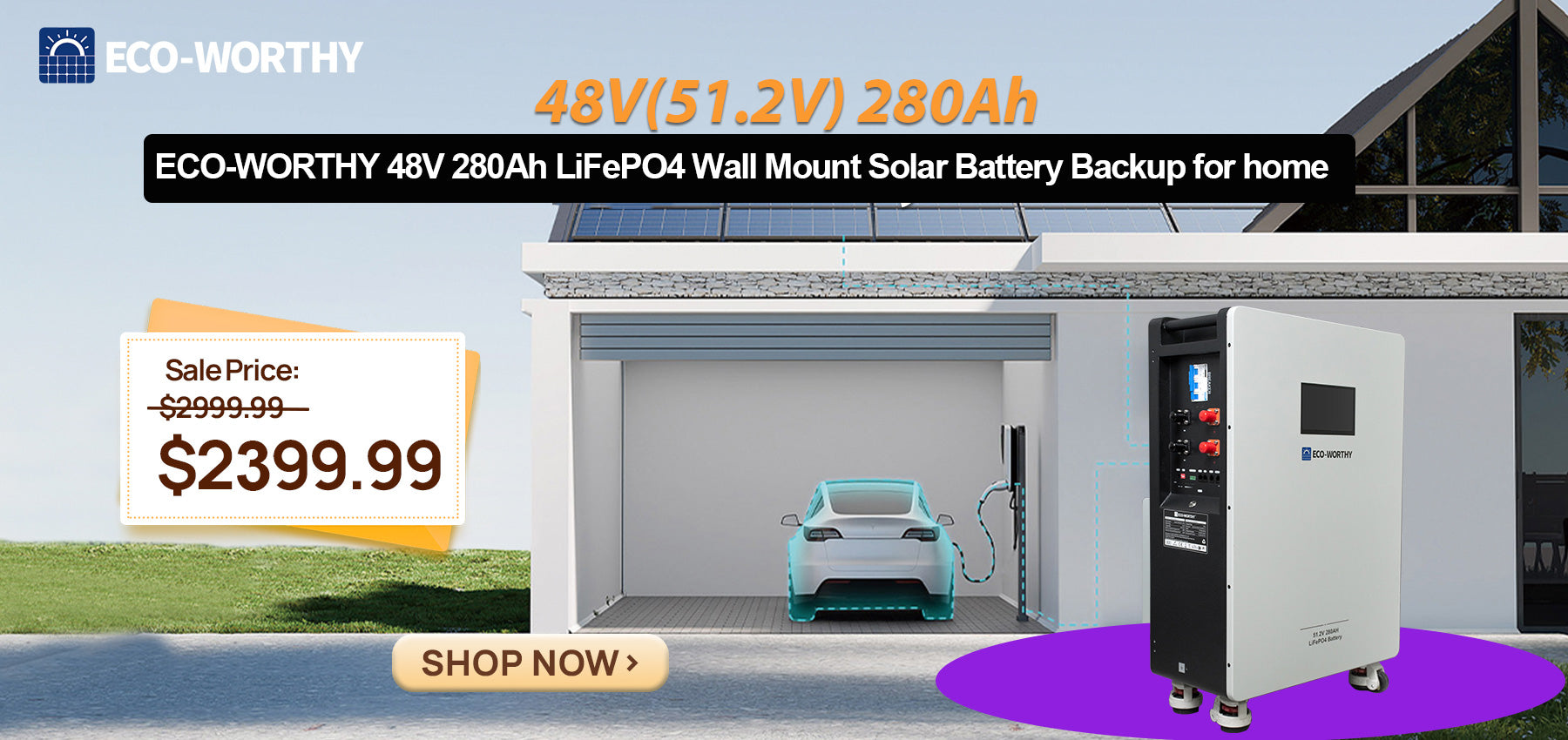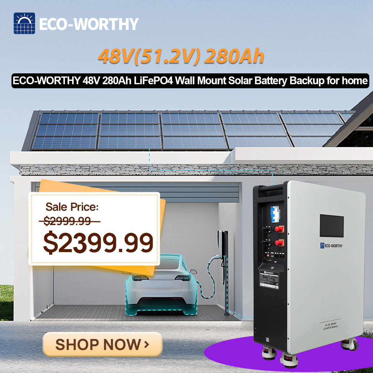 ECO-WORTHY 48V 280Ah LiFePO4 Battery| Solar Battery Backup for home | Wall Mount