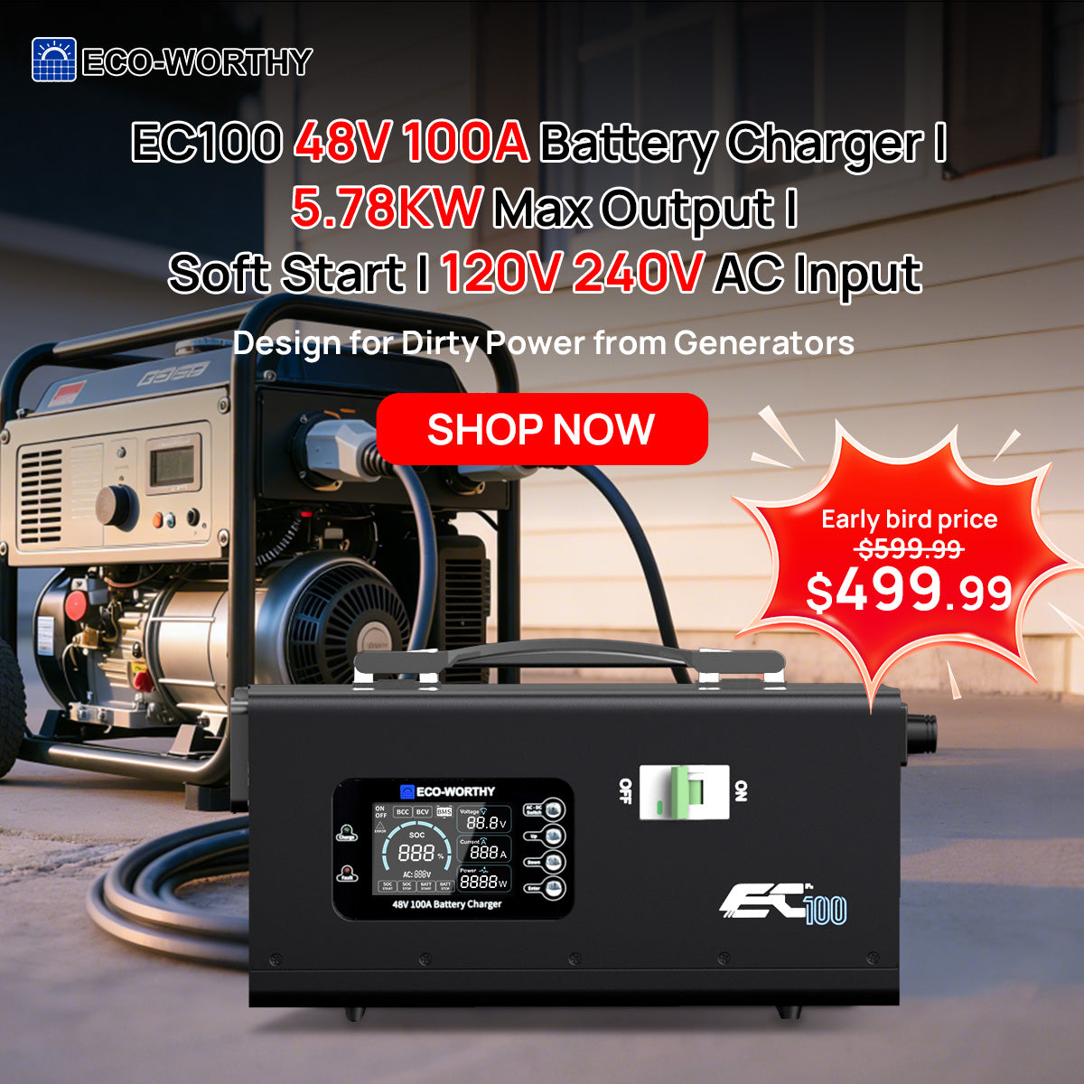 EC100 48V 100A Battery Charger | 5.78KW Max Output | Soft Start |120V 240V AC Input