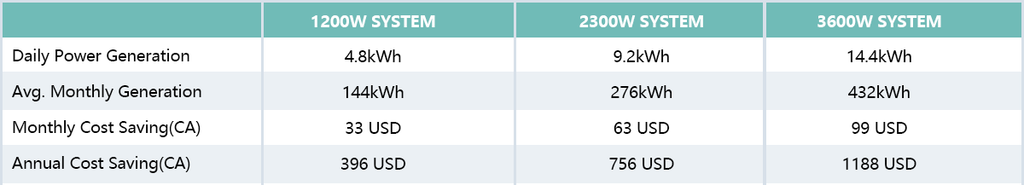 For example, in that way, if you purchased our 2300w complete system, which price is about $4600 , without the electrician service fee, it will take 6 years to gain the cost recovery, according to the above table and the annual bill saving. Of course, it’s just for California condition, the recovery period varies in different states. If your choice is the 3600w complete system, the cost recovery time will be around 7 years.