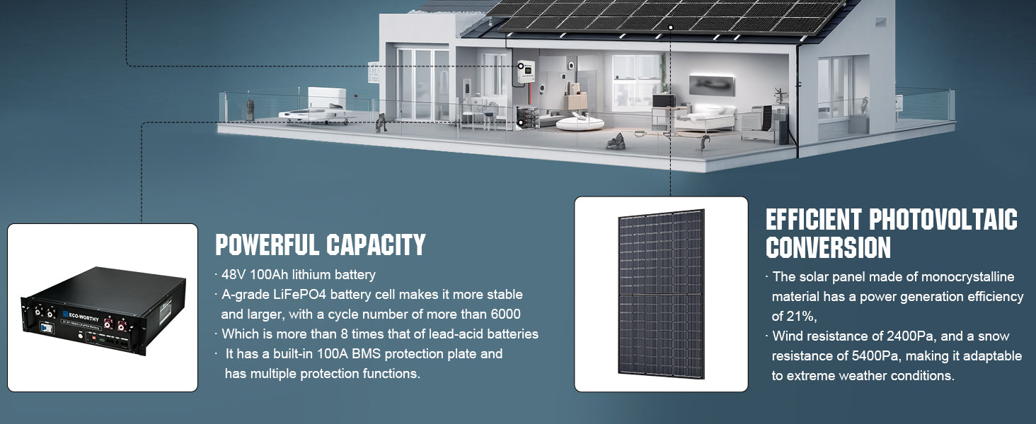ECO-WORTHY Complete Off-Grid Solar Panel Kit | 2*5KW 120V/240V Output | 20.48kWh/30.72kWh Lithium Battery | 7380Watt /9840Watts of Solar Panels