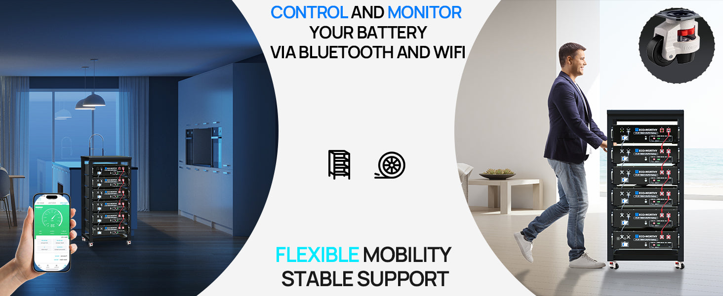 [Smart Monitoring,Seamless Compatibility] ECO-WORTHY 48V(51.2V)Server Rack Battery Supports CAN/RS485 for seamless communication with popular all-in-one solar inverters chargers.You can easily monitor your battery’s status in real-time through the mobile app, which supports both Bluetooth and WiFi connections.It can also be easily mounted in a 3U server rack to save space.
