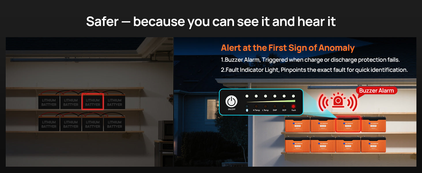 Smart & Easy Monitoring: Check battery status in real-time via the Bluetooth app on your phone. The clear LED display and alarm provide instant visibility and quick troubleshooting.