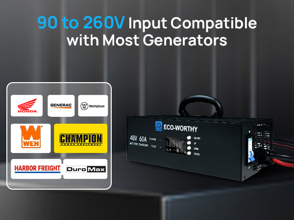 I ordered the Eco-Worthy 48V 60A Battery Charger, and it shipped right on time. The setup was simple and straightforward, and it has performed exactly as advertised. I especially appreciate that it’s already equipped to connect directly to a generator’s 240V outlet, making it extremely convenient for off-grid or backup power situations. Build quality feels solid, and charging performance has been consistent and reliable. So far, so good—this charger has exceeded my expectations.