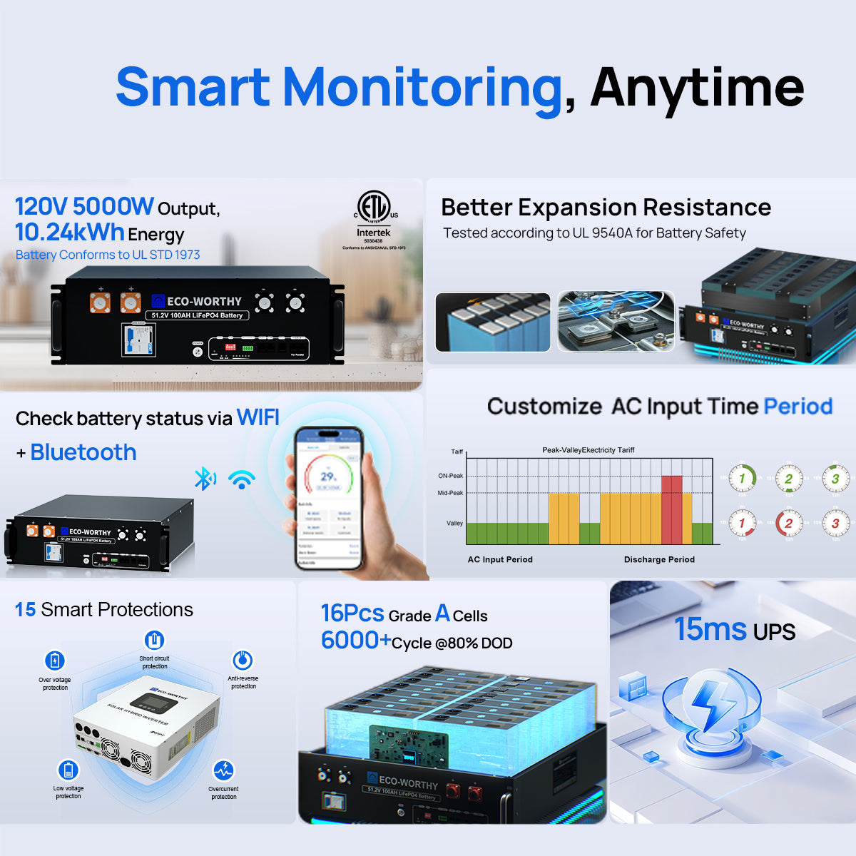 Reliable Quality & Support - The battery meets key U.S. safety standards including UL1973, UL9540A, and CEC Listed. Your investment is secured by a 10-year warranty and 24/7 customer support.