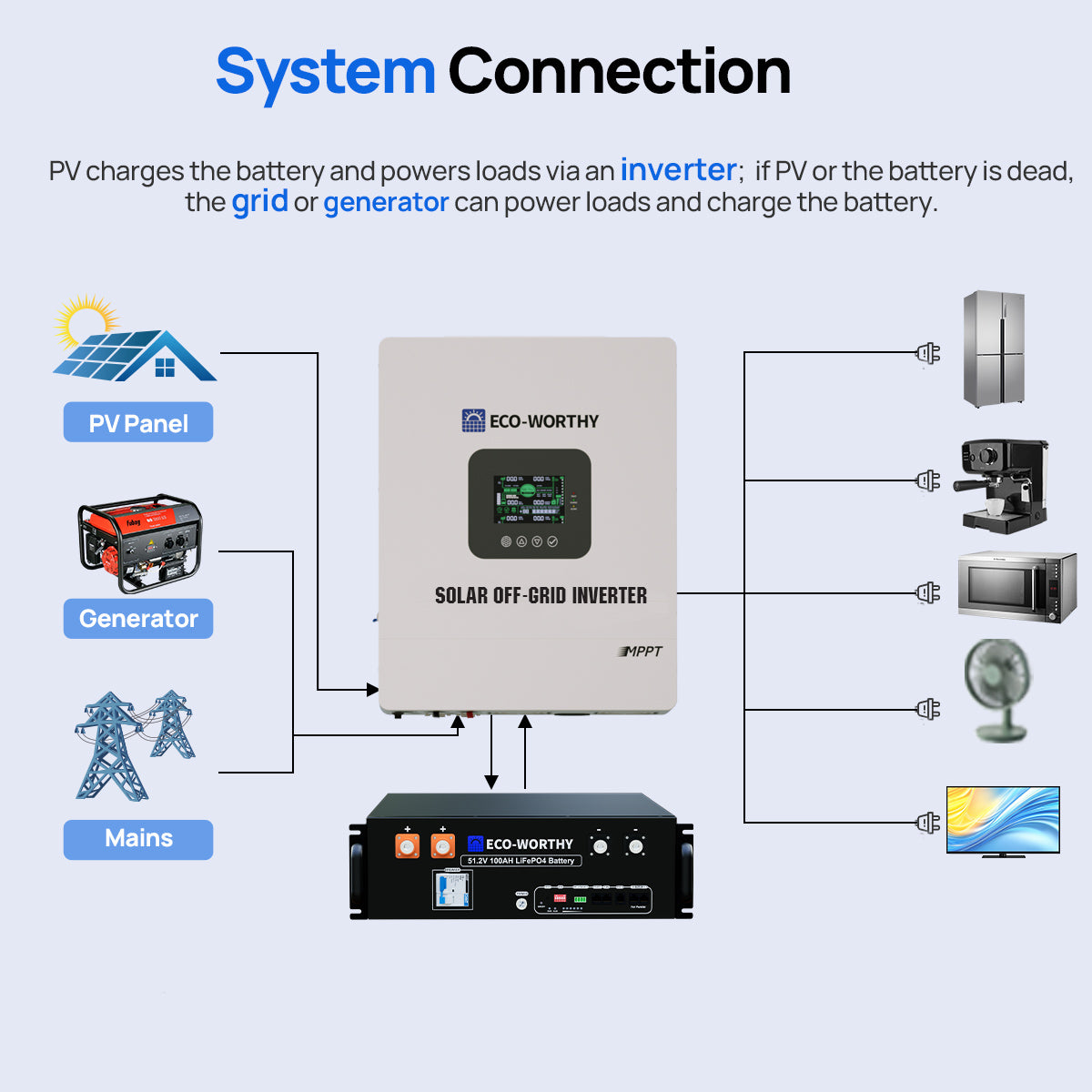 Easy DIY Installation - The inverter and battery feature closed-loop communication for simple, intuitive setup. No complex parameter configuration is needed, making off-grid system installation easy even for beginners.