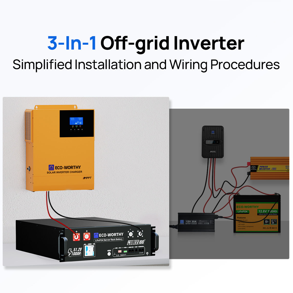 ECO-WORTHY 5.12KWh Home Backup Power With 48V 100Ah LiFePO4 And 3500W 48V Off-Grid Inverter