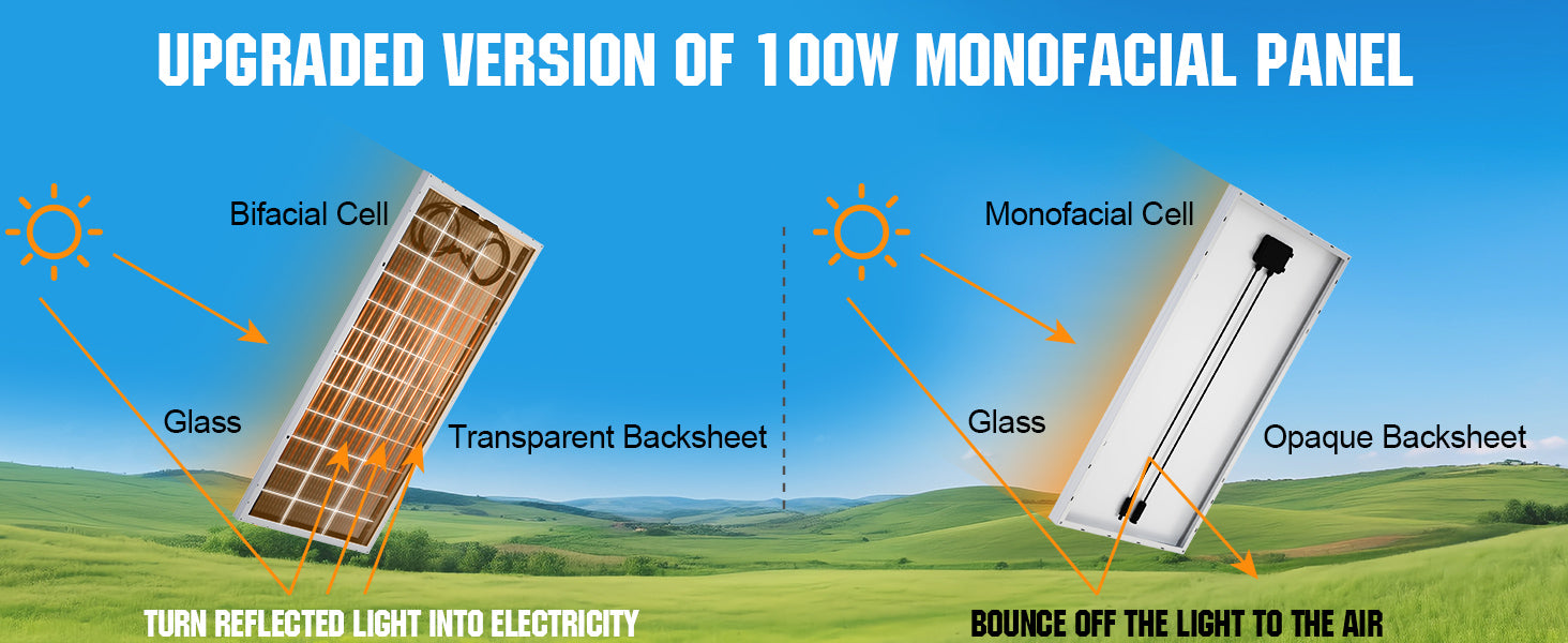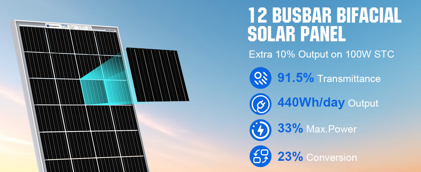 Bifacial 100W 12V Monocrystalline Solar Panel