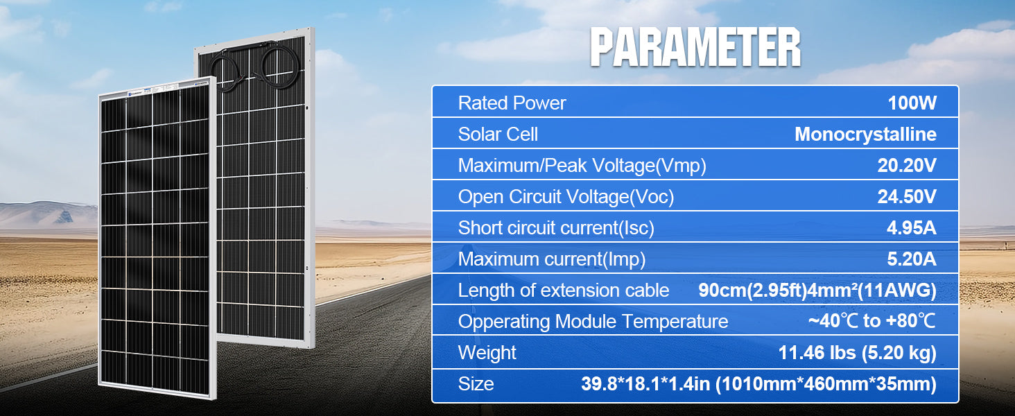 Rated Power: 100W | Solar Cell: Monocrystalline |