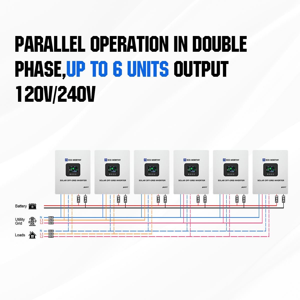 I bought two eco-worthy ECO5000W(SR) hybrid inverters, they are connected in parallel in split phase and I have had them working for over two months now and I have to say that they are very good, to date they have not presented the slightest failure or instability, they respond well to changes in the main grid. The integrated MPPT works perfectly. During this period I have been changing the configurations to adjust them to my needs and in each of the variants the performance is excellent. Right now I have them configured in [01] BT1ST, [06] ONLYPV and I am delighted with their operation. However, the only thing I have not been able to get to work are the Dataloggers that they bring for remote monitoring, However, for this one problem I give it 5 stars because I am really happy with the inverter's operation.. Otherwise everything works at 100%. So I recommend this inverter.