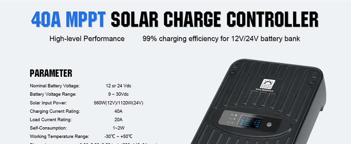 ·99% Efficient MPPT Technology: Maximum Power Point Tracking technology with a high tracking efficiency of up to 99% and peak conversion efficiency of 98%, 40% more than traditional PWM charge controller. It can keep a stable charging current even on cloudy days, making no waste of any sunlight.