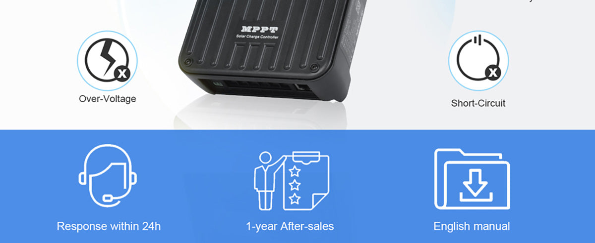 ·Reliable Electronic Protections: It has multiple protections to prevent those circuit issues, including Reverse Polarity, Short-Circuit, High Temperature, Over-Current, and Over-Voltage/Low-Voltage. Prevent explosion and fire condition, keep the controller safe during all time work.