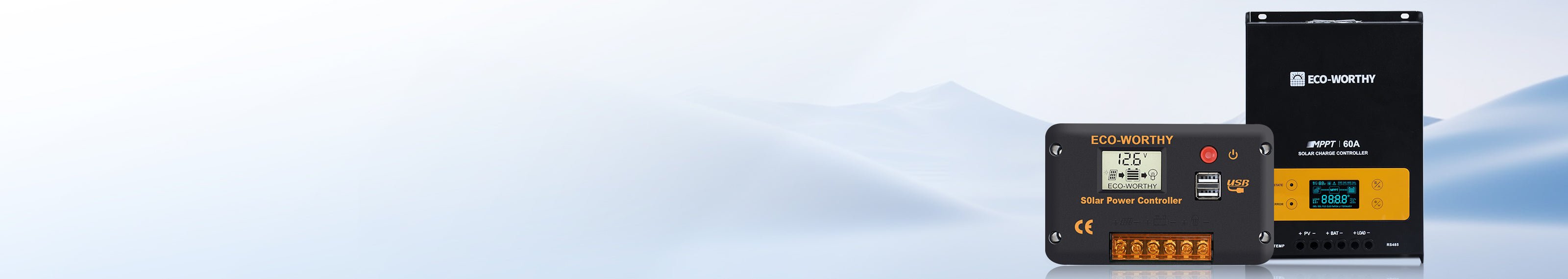 The main function of a charge controller (also known as a charge regulator or battery regulator) is to safely charge a solar battery at the correct charge rates, and to protect the battery from overcharging.ECO-WORTHY offers two models, the more advanced Maximum Power Point Tracking (MPPT) and the industry-standard Pulse Width Modulation (PWM) controllers for solar-battery charging, suitable for both 12V and 24V solar kits.