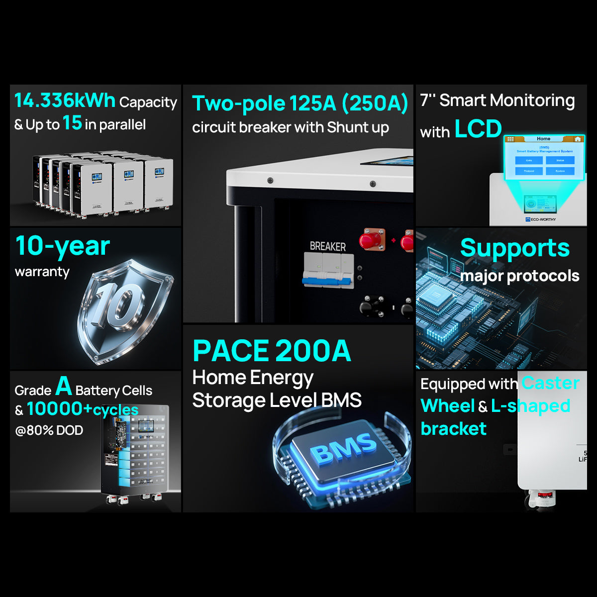 ECO-WORTHY 48V 280Ah LiFePO4 Battery| Solar Battery Backup for home | Wall Mount