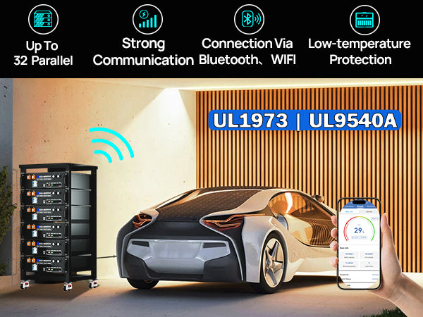 Package Includes: Each battery comes with a pair of battery parallel cables,Buy 4 Packs get ESM100 Battery Monitor, Buy 6-pack get 6-layer battery rack,Buy 12-pack get 6-layer battery rack(2pcs) and ESM100 Battery Monitor