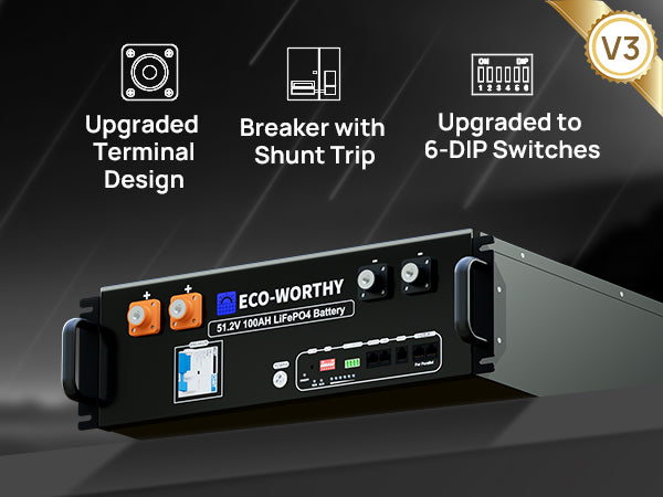 ECO-WORTHY 48V 100Ah Server Rack Battery | 5.12kWh V3 Lithium Battery | UL1973 | UL9540A | 10-Year Warranty