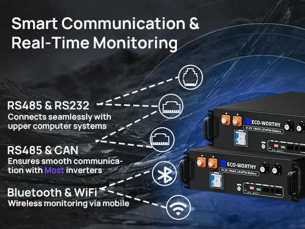 3. Smart Monitoring, Anytime – Stay in control with real-time status tracking via Bluetooth/WiFi app or CAN/RS485 connection. Works seamlessly with popular all-in-one solar inverters.