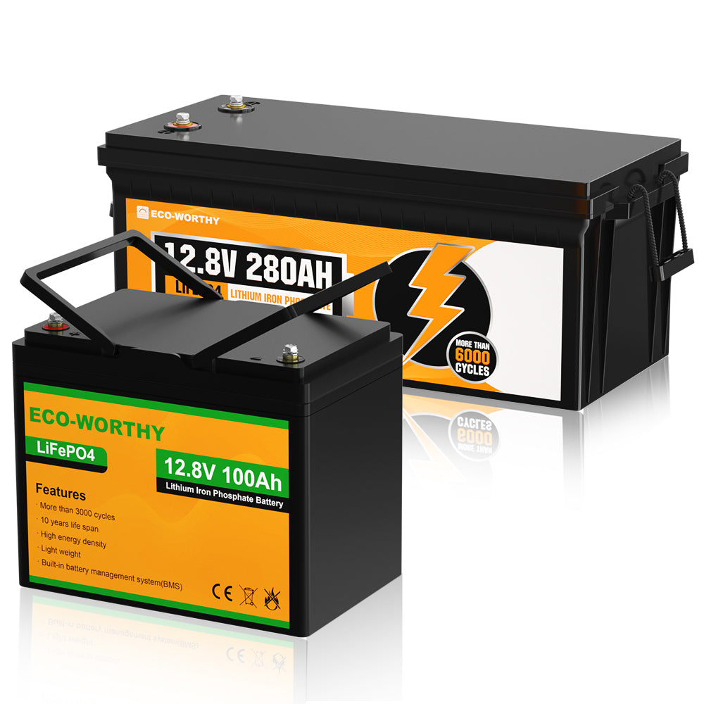 ·Up to 15000+ Cycles: ECO-WORTHY 12V 100Ah LiFePO4 battery can reach 3000~15000 deep cycles, which is equivalent to 6 lead-acid batteries.