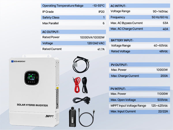 ECO-WORTHY 20.48KWh/30.72KWh Home Backup Power With 48V 100Ah LiFePO4 And 10000W 48V Off-Grid Inverter