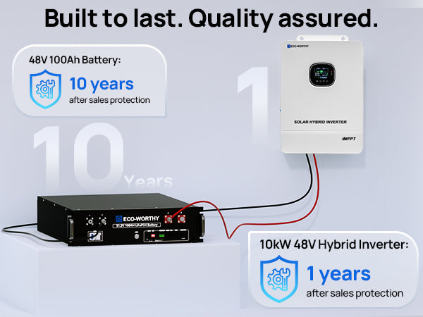 A1: We offer 10-year warranty for 51.2v server rack lithium battery,covering non-human-induced battery failure issues.When you buy this solar kit, you are covered by the full manufacturer warranties on each component. Plus, you’ll receive our lifetime customer and technical support.