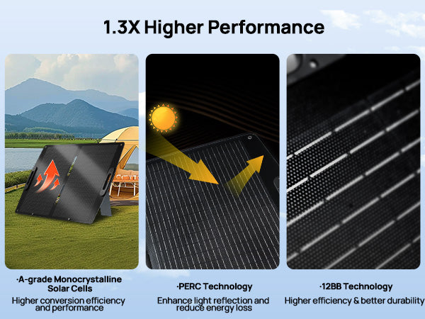 Adjustable Kickstand for More Efficiency: The 100W folding solar panel has a built-in multi-angle kickstand to optimize sunlight exposure and increase energy harvesting efficiency by over 25% or more