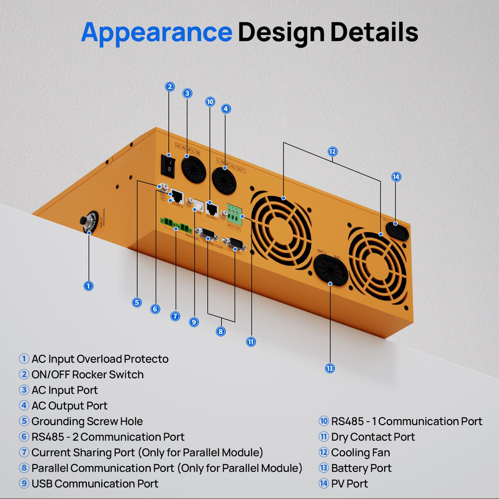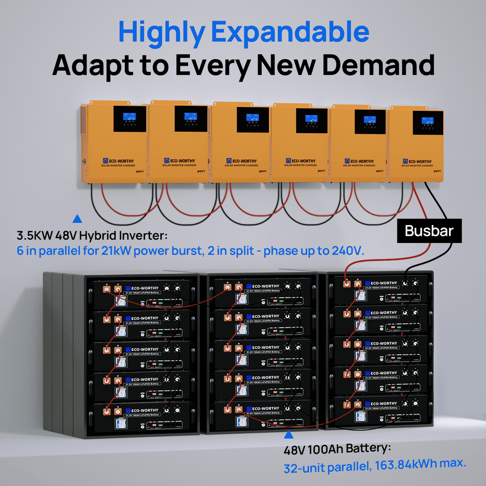 [Parallel Supportable] Parallel support up to 6 units-21kw Max. It can be single phase or separate phase parallel.The output voltage of one inverter is 120v, and more than two inverters can output 120v/208v/240v in parallel. (Two units MINIMUM have to be in parallel to achieve 220V power.)