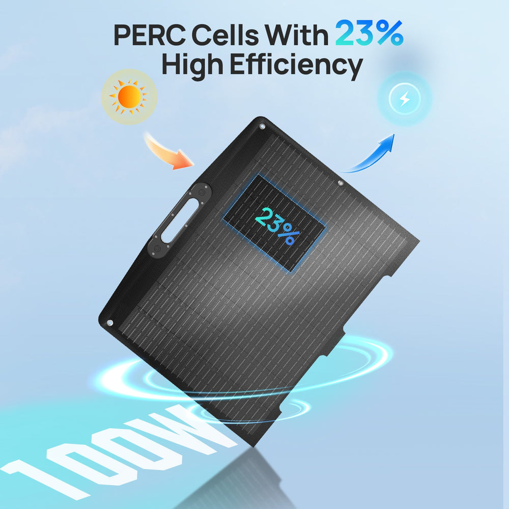 Expandable Power System: The 100W poatable soalr panel supports series/parallel connections to combine multiple panels, flexibly scaling power output for higher energy demands