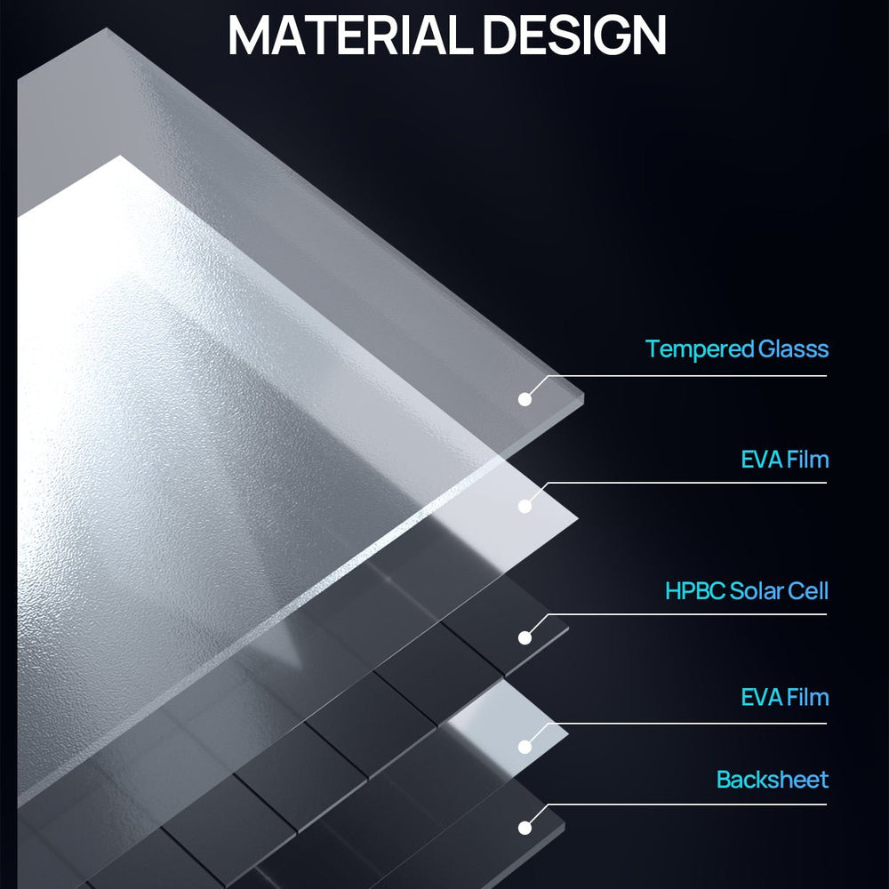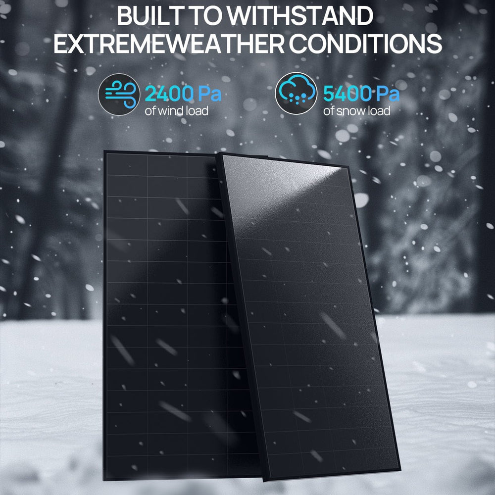 DURABLE TO LASTE:quipped with IP68 protection rating, can withstand decades of rain and snow, and uses low-iron tempered glass and corrosion-resistant aluminum frame to ensure excellent performance in all weather conditions.
