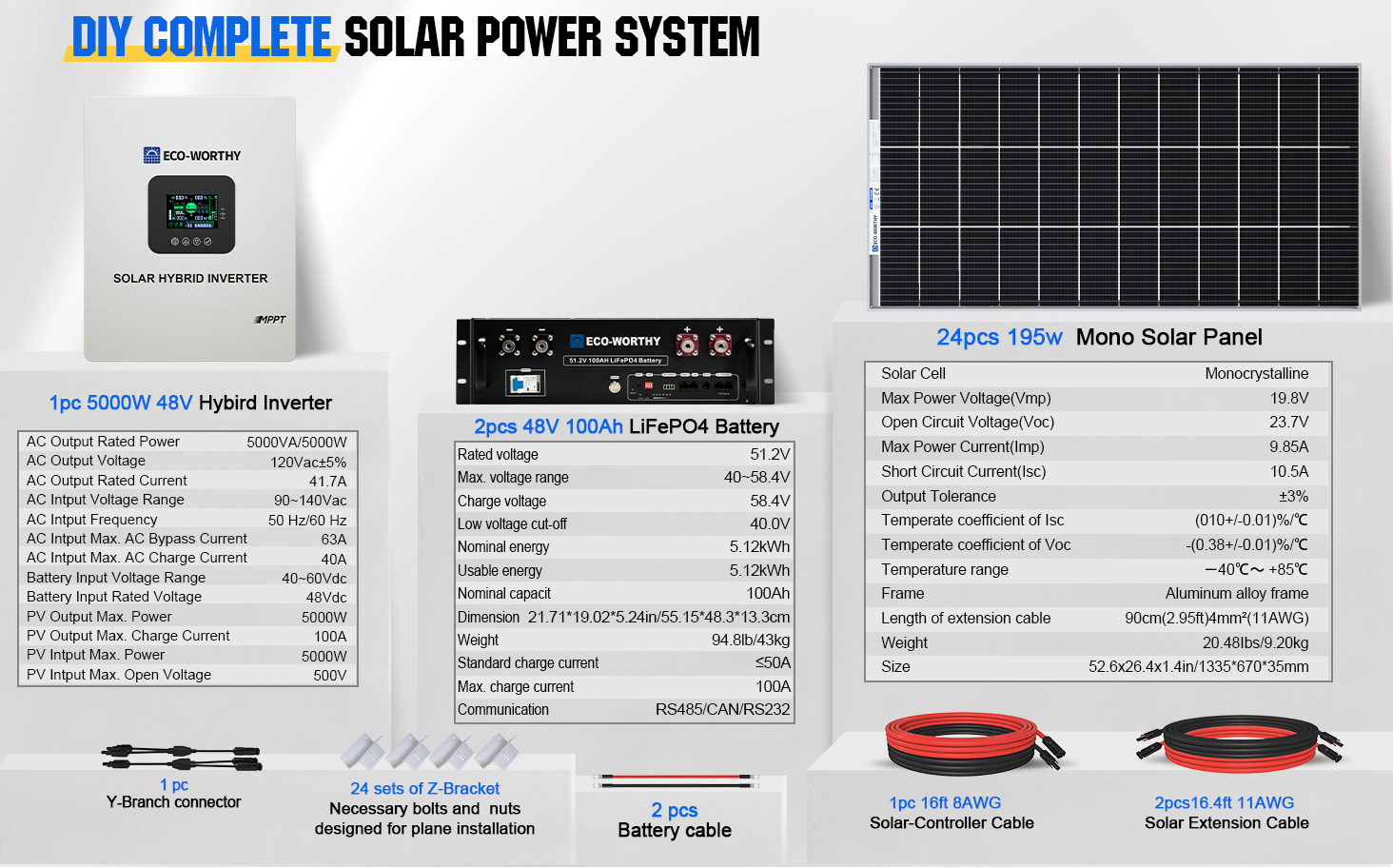 Stay prepared for power outages, avoid generator noise or expensive grid charges. Eco-Worthy provides types of solar power supply solutions for 1-3 people’s home.
