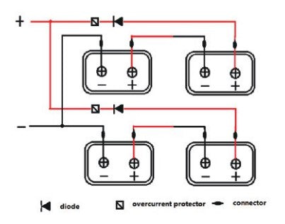 When the modules are connected in series, the final voltage is the sum of the individual modules, when the modules are connected in parallel, the final current is the sum of the individual modules.