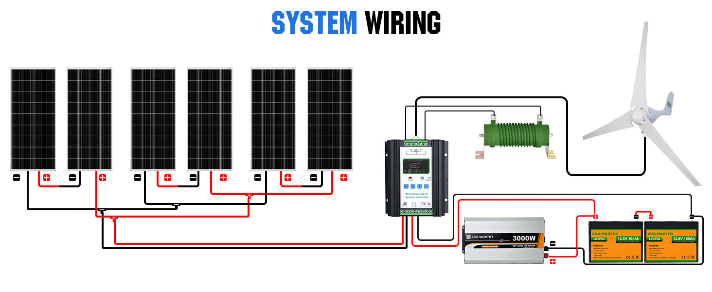 For people looking to go off-grid, 1000W 24V hybrid kits allow you to produce energy around the clock. This way, you can decrease the size of the battery system needed to power your home during the night. If you have any questions regarding this product, please contact us info@eco-worthy.com.