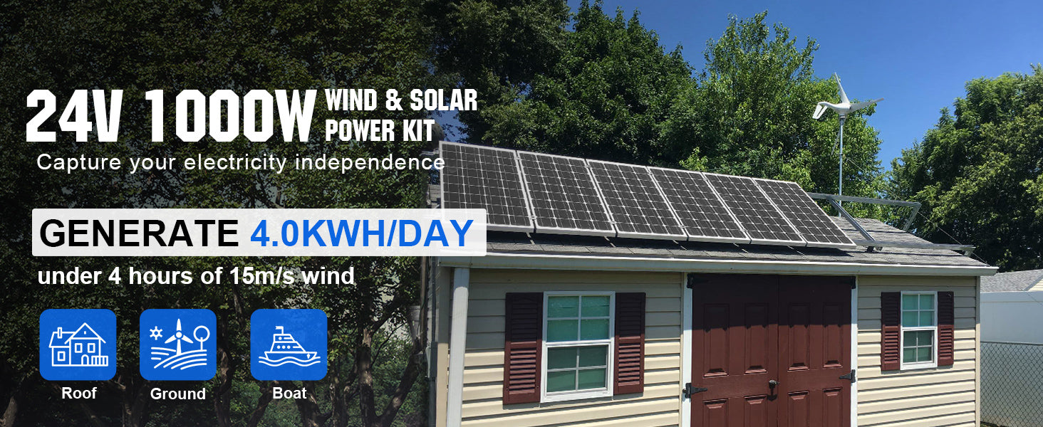 1000W 24V (400W Wind+6x100W Solar) Solar Wind Hybrid Kit