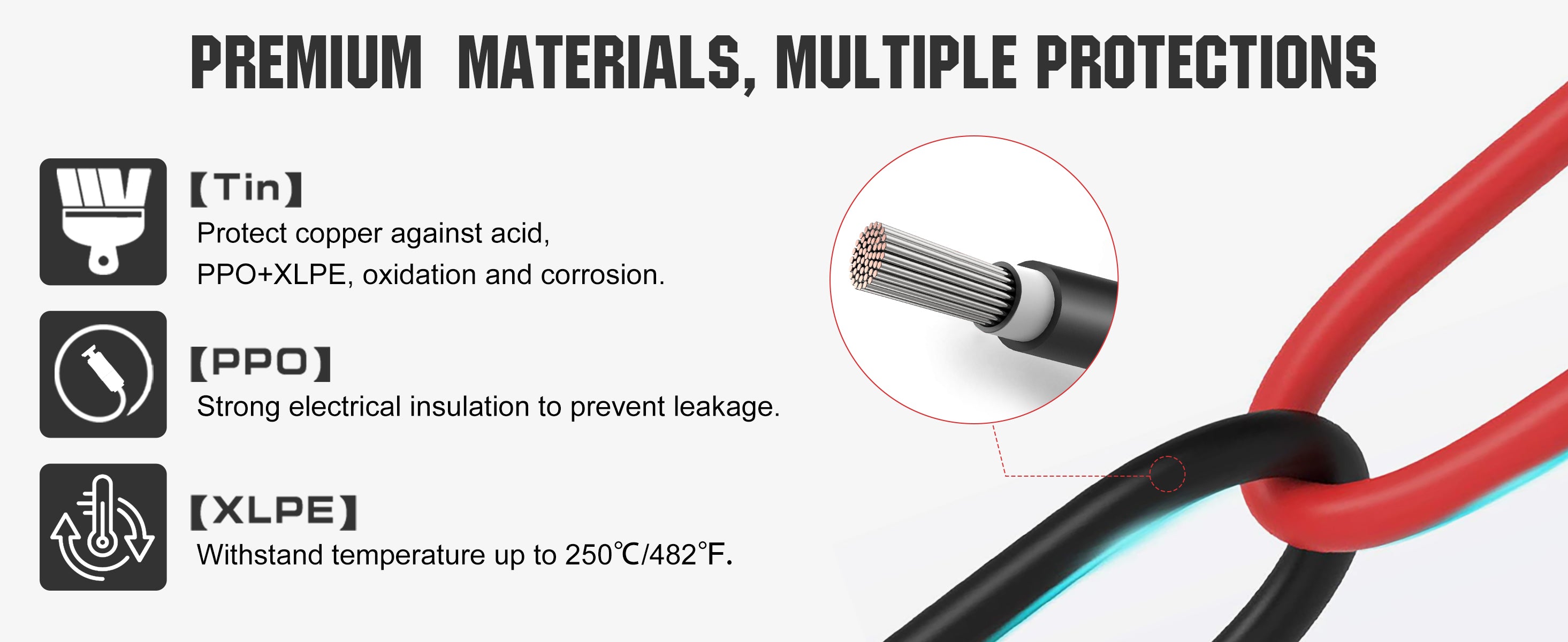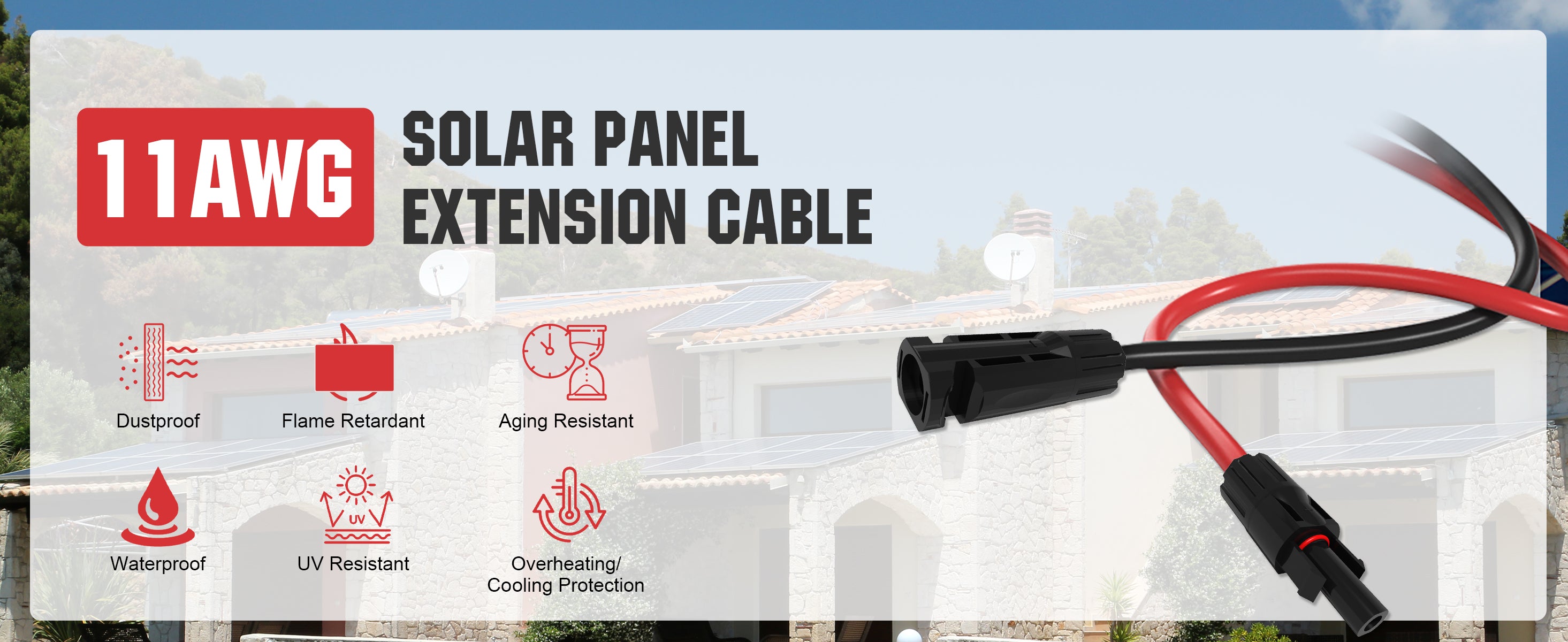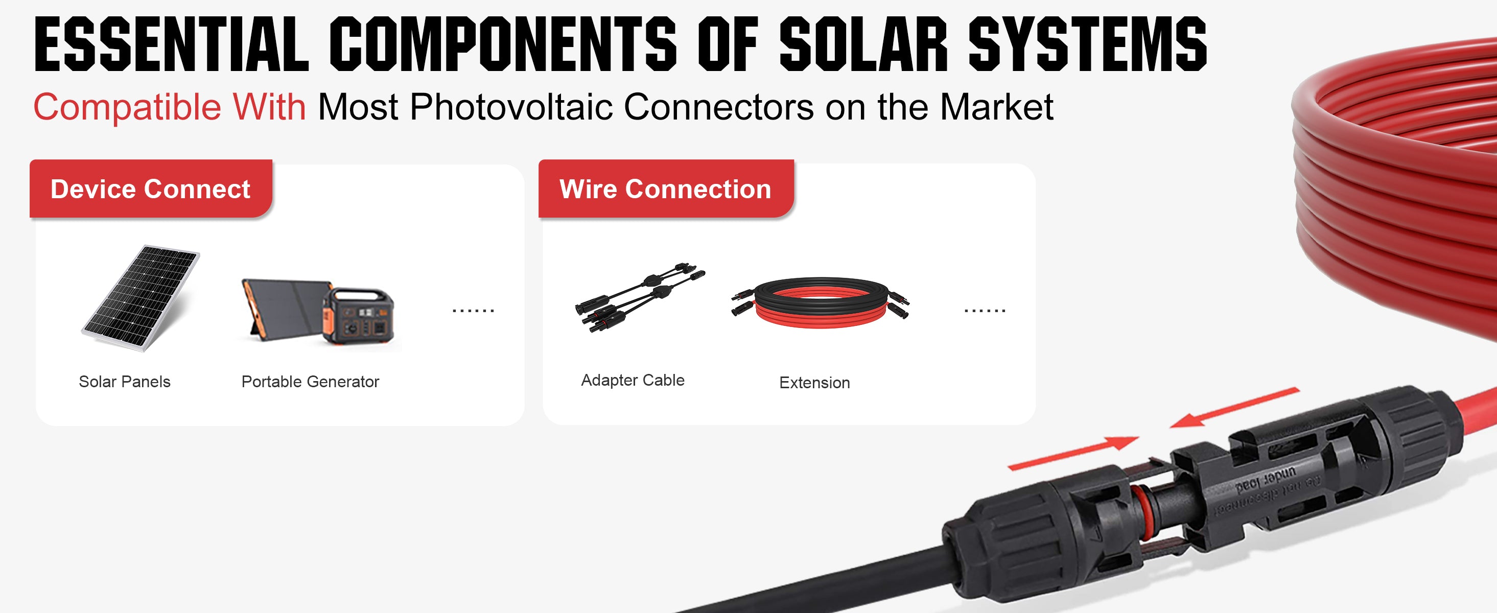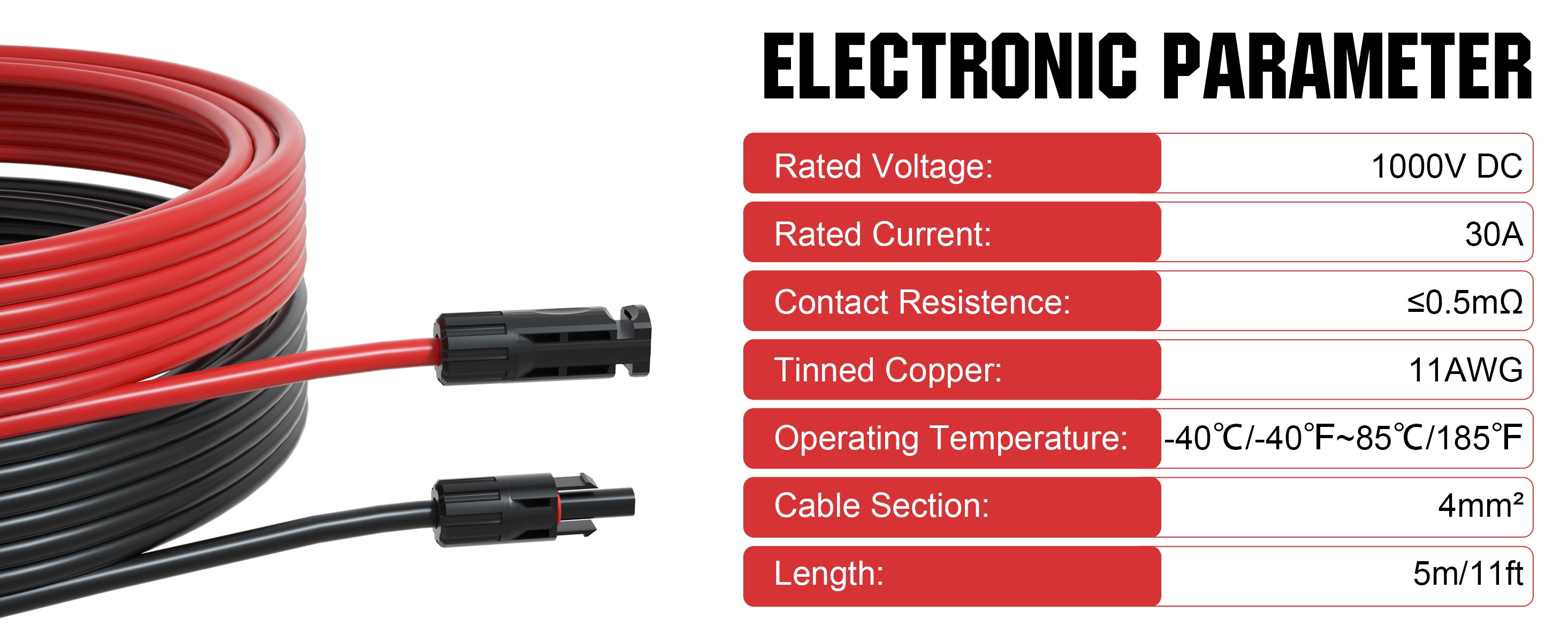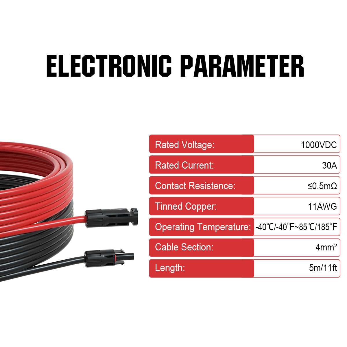 ECO-WORTHY 12AWG 16.4FT Solar Extension Cables Wires with Female and Male MC4 Connectors is high quality copper material made, durable and quick assemble with solar panel. Protect against short circuits and ground leakages. For use outdoors, explosive areas, industrial, commercial applications.