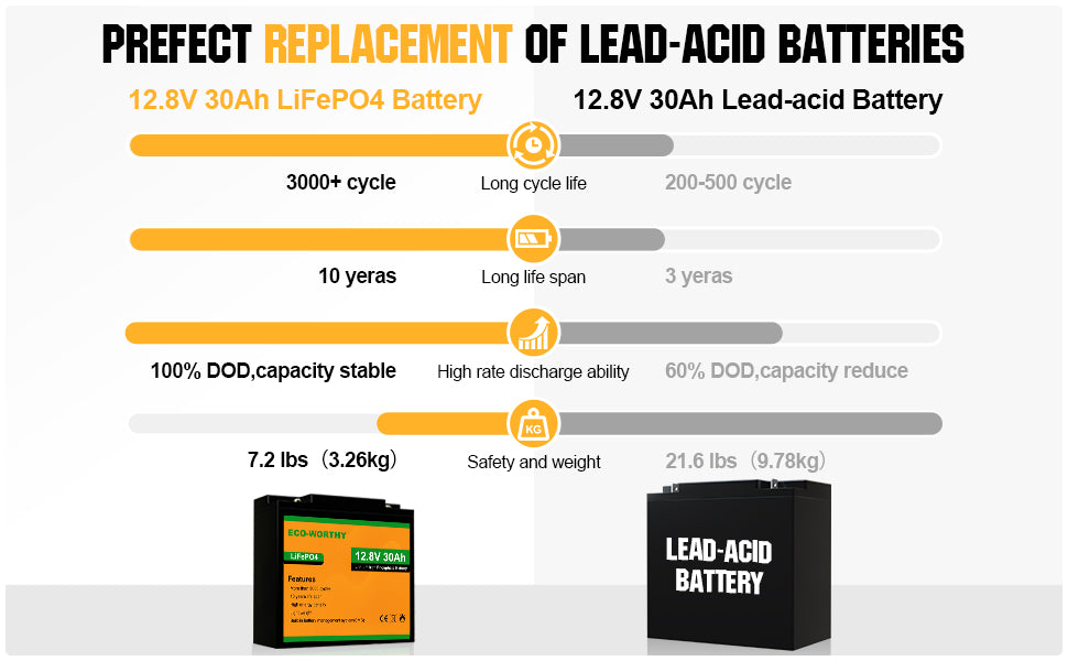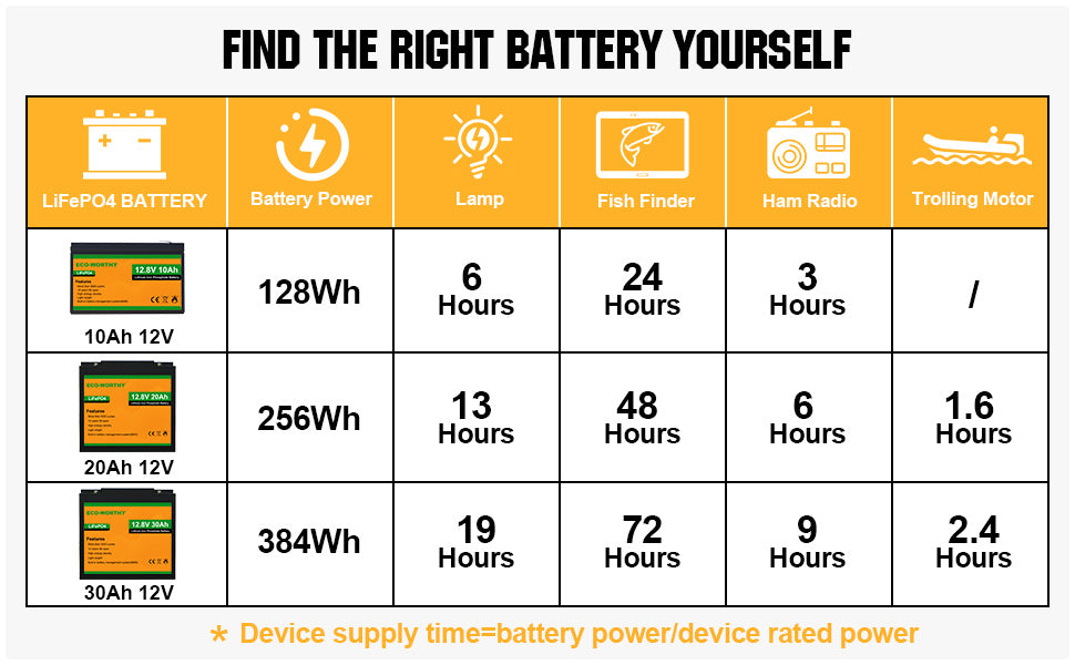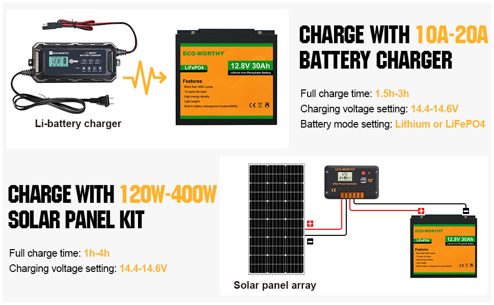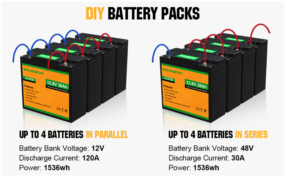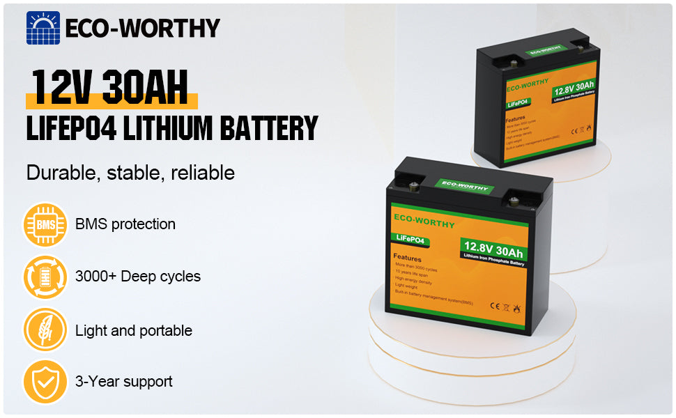 ·Extremely Safe: LiFePO4 batteries are safest battery type available today. ECO-WORTHY lithium battery has a built-in Battery Management System(BMS), we can guarantee the safety and reliability of our batteries.