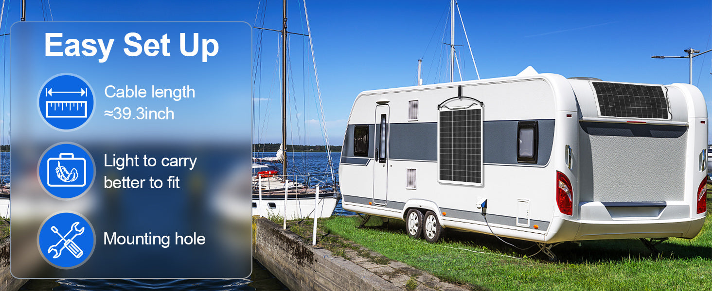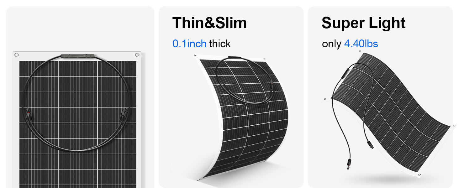 ·Maximum Stability: Our flexible solar modules are made from a special aluminum-plastic composite. The aluminum core of the base plate is 0.8 mm thick and encased in plastic to give the entire module greater stability without reducing flexibility. Thanks to the integrated bypass diodes in the junction box, the module can continue to produce electricity even when it is shaded or in poor lighting conditions.