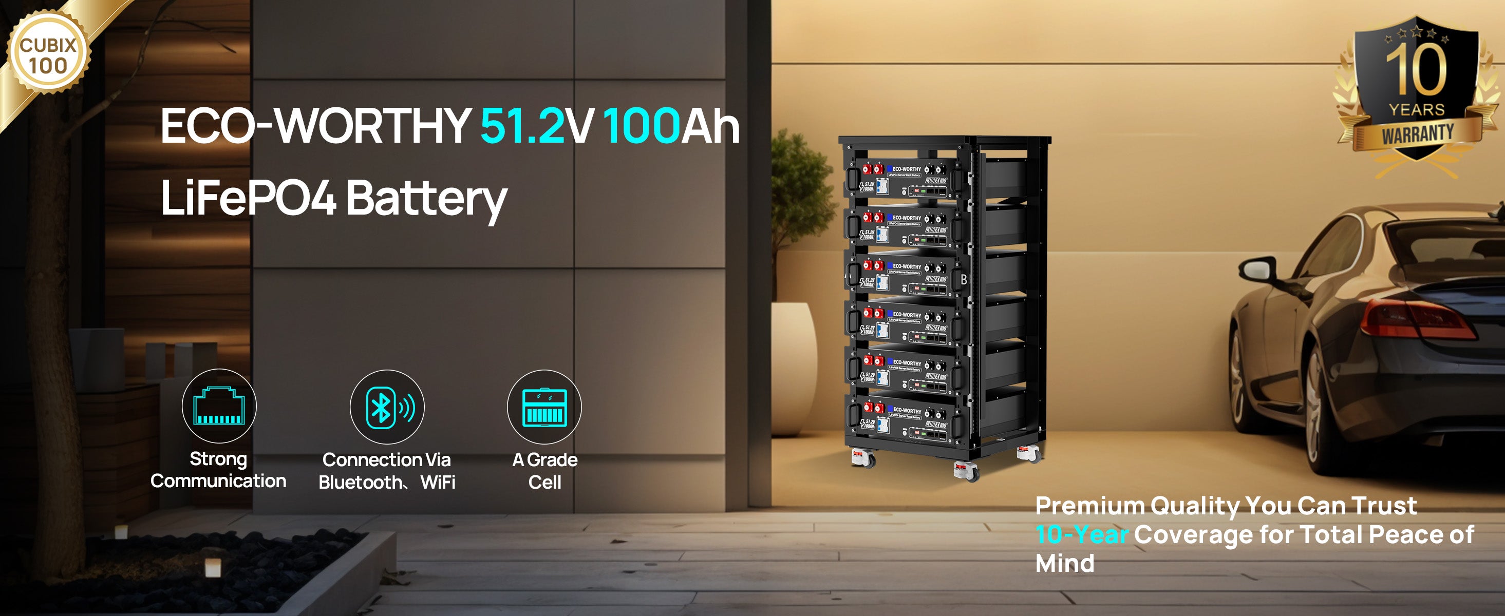 ECO-WORTHY 20.48kWh To 30.72kWh Home Backup Power with 48V LiFePO4 and 10kW Inverter