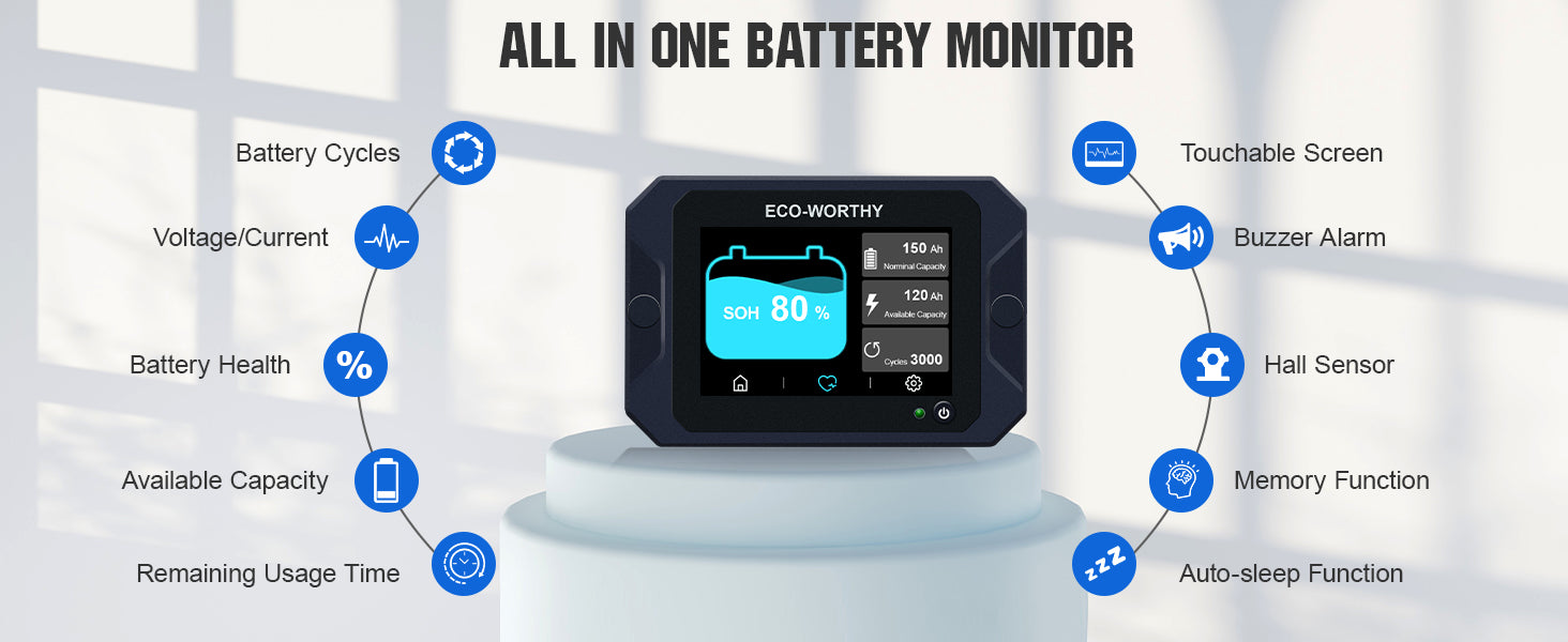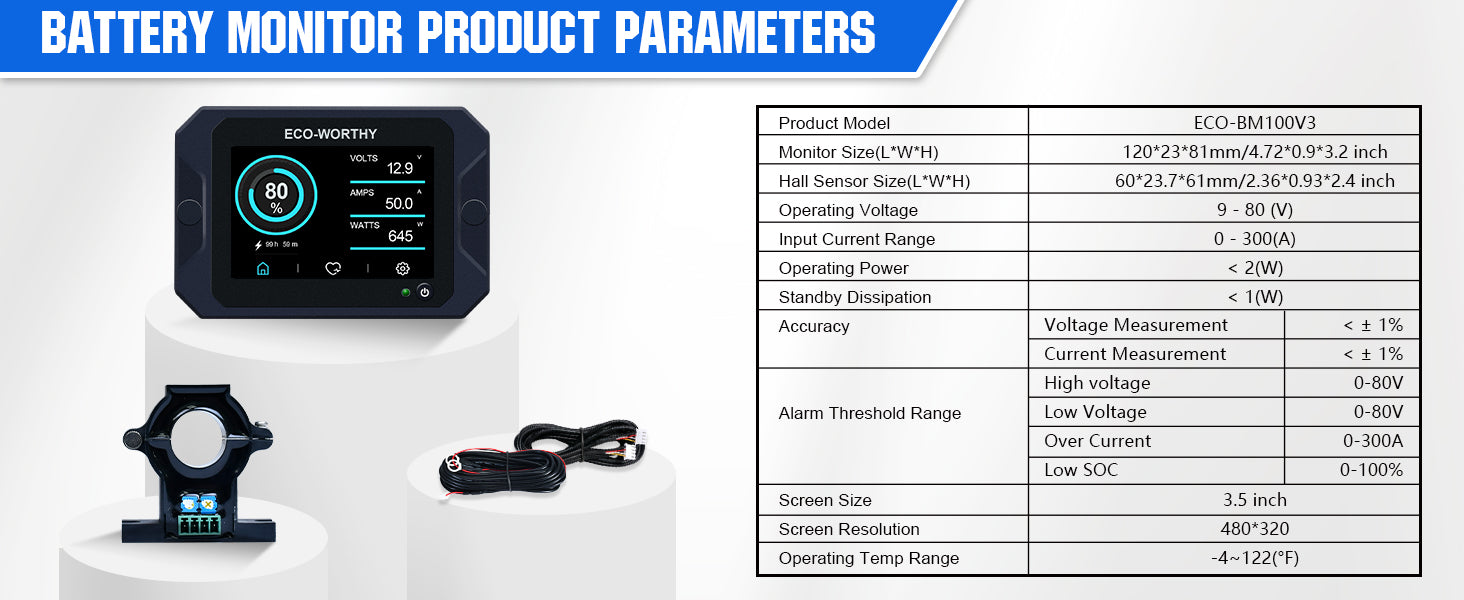 ·Unlimited Battery Types: Compatible with various battery types, suitable for 9-80V 300A battery banks, widely monitoring mainstream batteries on the market. Suitable for lithium batteries, lithium iron phosphate batteries, AGM, lead-acid batteries, etc.