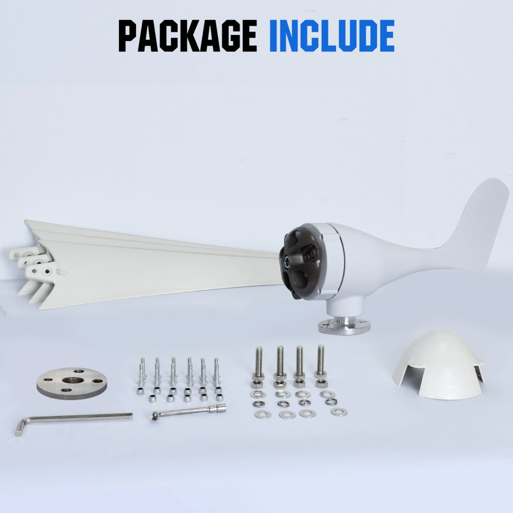 ·Maintenance-free: Our Wind Turbine Generator is made of carbon fiber composite and cast-aluminum, making it durable and maintenance-free. You can install it outdoor regardless of environment, weather and seasons.