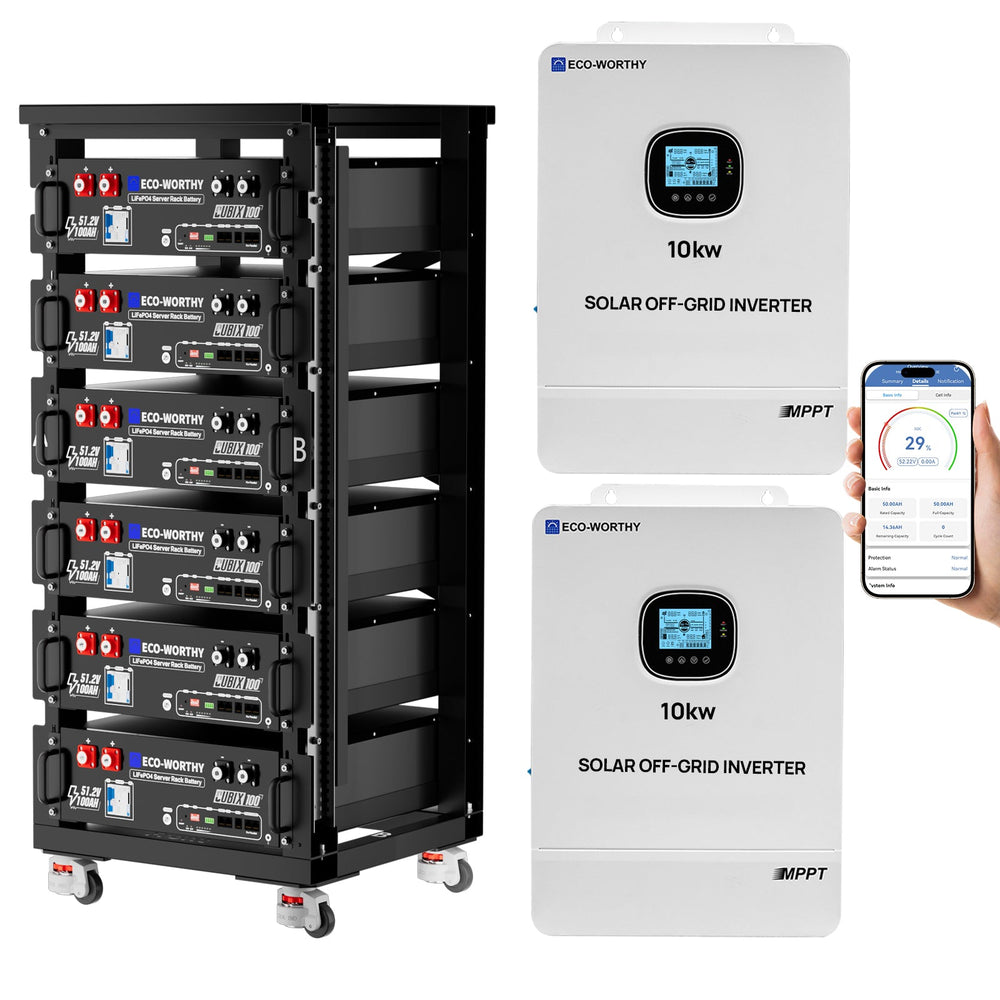 ECO-WORTHY 20.48kWh/30.72kWh Home Backup Power with 48V LiFePO4 and 10kW Inverter