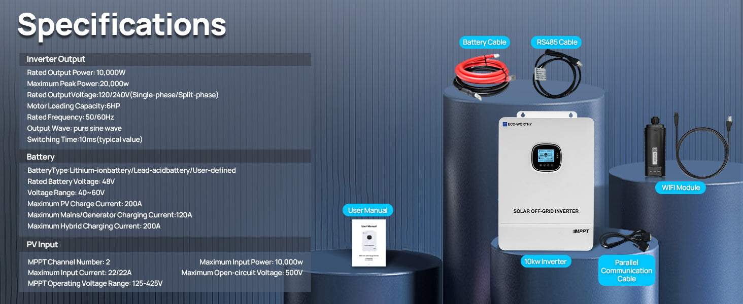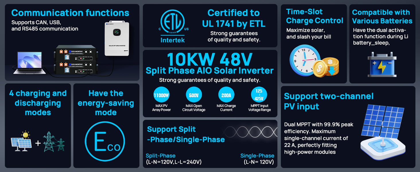 ECO-WORTHY 10kW Off-Grid Split-Phase AIO Inverter
