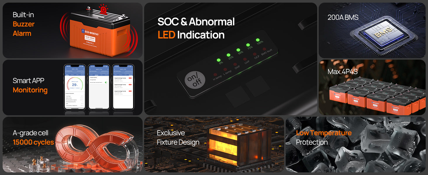 Safe & Full Protection: The advanced 200A BMS with full protection (overcharge, short circuit, overheating).You can trust it to power your family's adventures or home essentials safely, with the quality assurance American consumers expect.