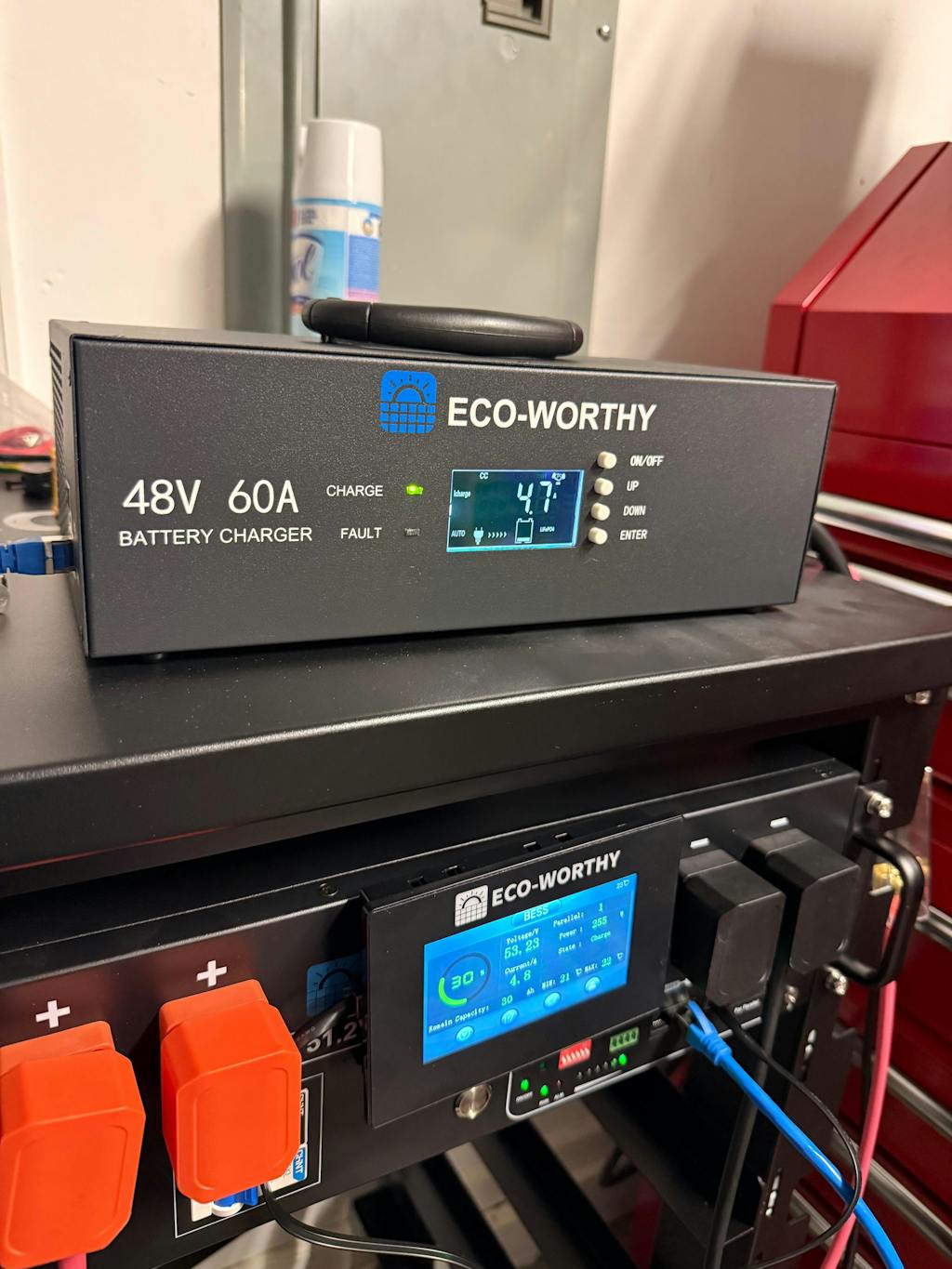 Smart Charging with CAN Communication: Features timed charging and CAN compatibility with ECO-WORTHY 48V 100AH cabinet batteries for safer, intelligent charging.