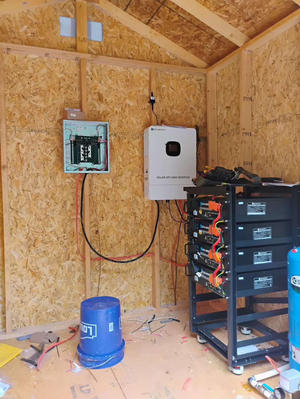 1.36xEco-Worthy 410w Solar Panel-Black 2.2xEco-Worthy 10000w All-In-One Off-Grid Inverter 3.4xPv-Inverter Cable 4.8xPv Extension Cable 5.12xEco-Worthy 51.2v 100ah Lifepo4 Battery 6.2x Eco-Worthy Rack6 V2 I 6-Layer Rack With 600a Busbar