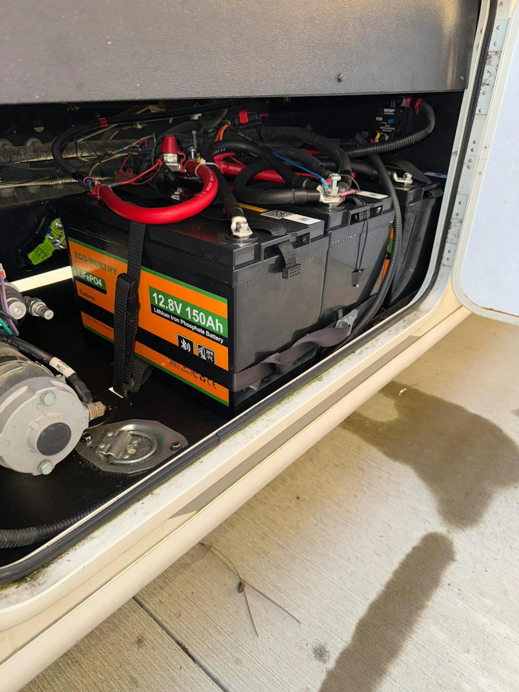 I replaced the original two AGM house batteries , Total of 184 Ah. The original WAFCO 55 amp AC/DC converter and The original 160amp BIM with new RecPro Lithium compatible 100 amp 12 v AC/DC converter, new 225 amp LITHIUM BIM.